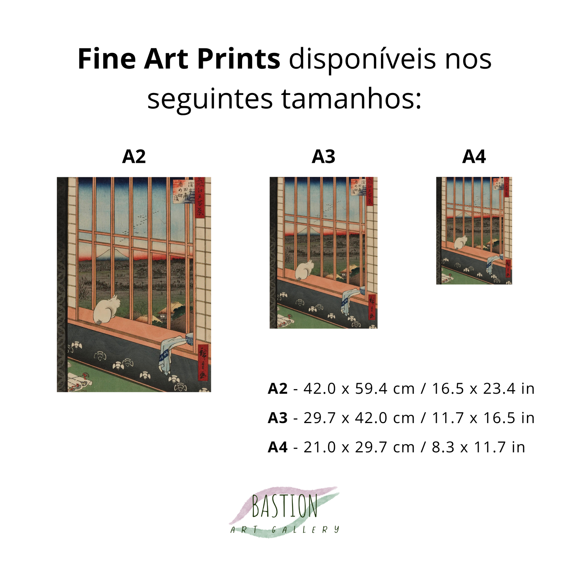 Utagawa Hiroshige (歌川廣重) nasceu em 1797 é reconhecido como um mestre da tradição da impressão em xilogravura ukiyo-e, tendo criado 8.000 gravuras da vida cotidiana e de paisagens do Japão do período Edo. Órfão aos 12 anos, Hiroshige começou a pintar pouco tempo depois, sob a tutela de Toyohiro, da escola Utagawa.