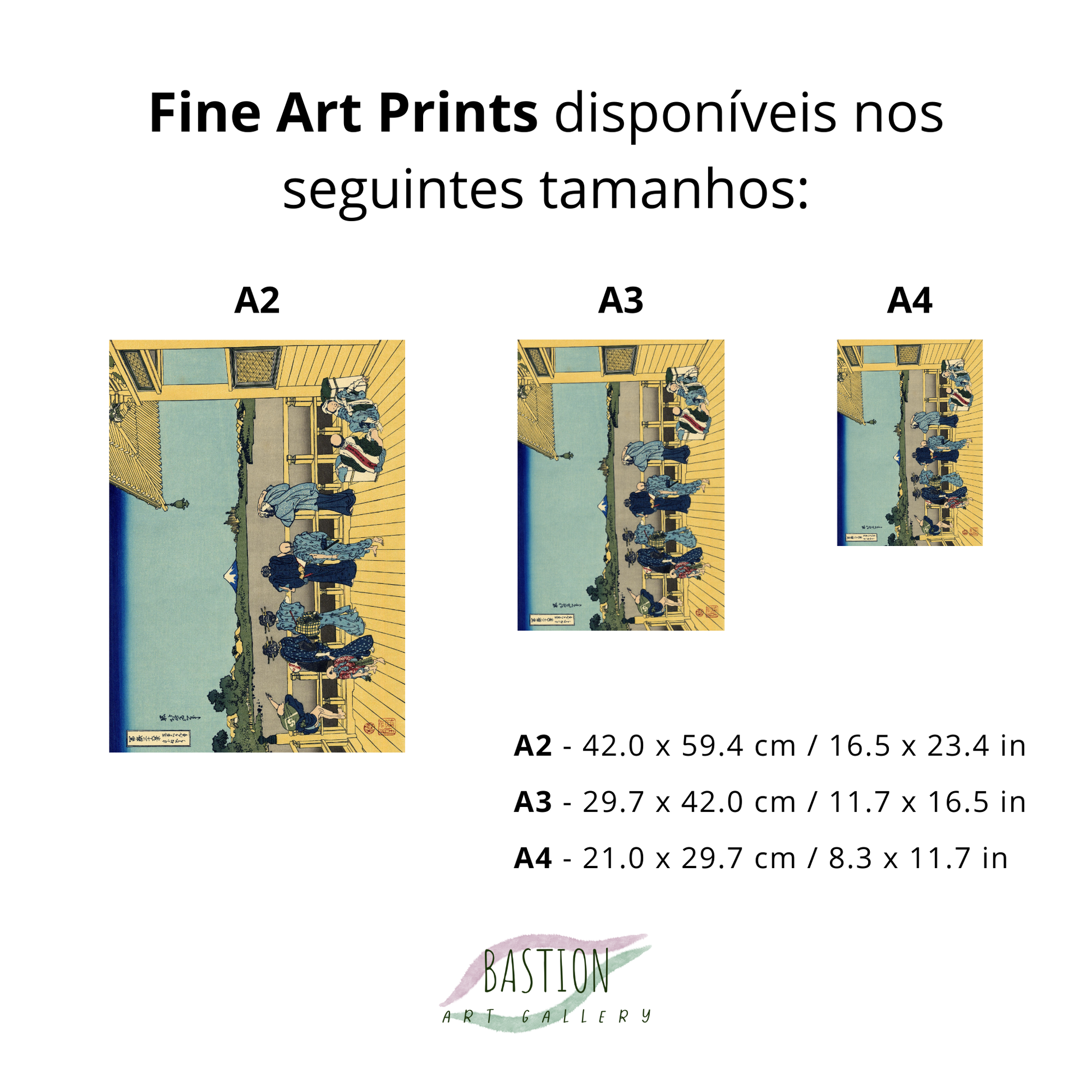 A obra, em impressão de madeira colorida, mede aproximadamente 25,4 x 37,5 cm (cerca de 10 x 14,8 polegadas) e está em coleções como a do Museu Nacional de Tóquio, exemplificando a habilidade de Hokusai em integrar o Monte Fuji em cenas vibrantes e equilibradas.