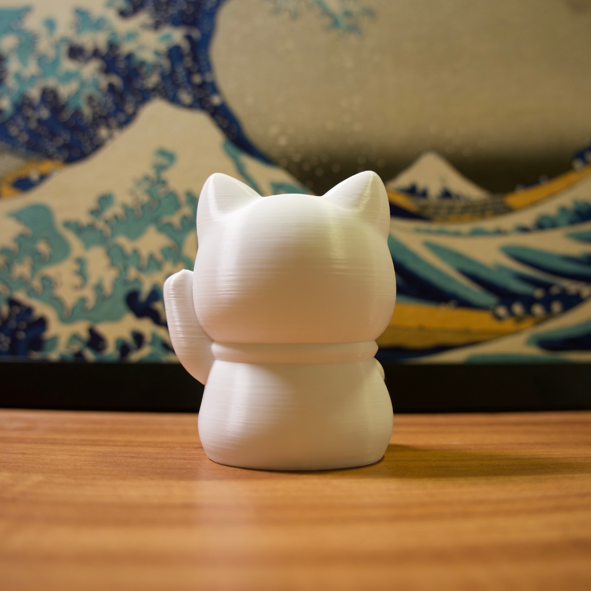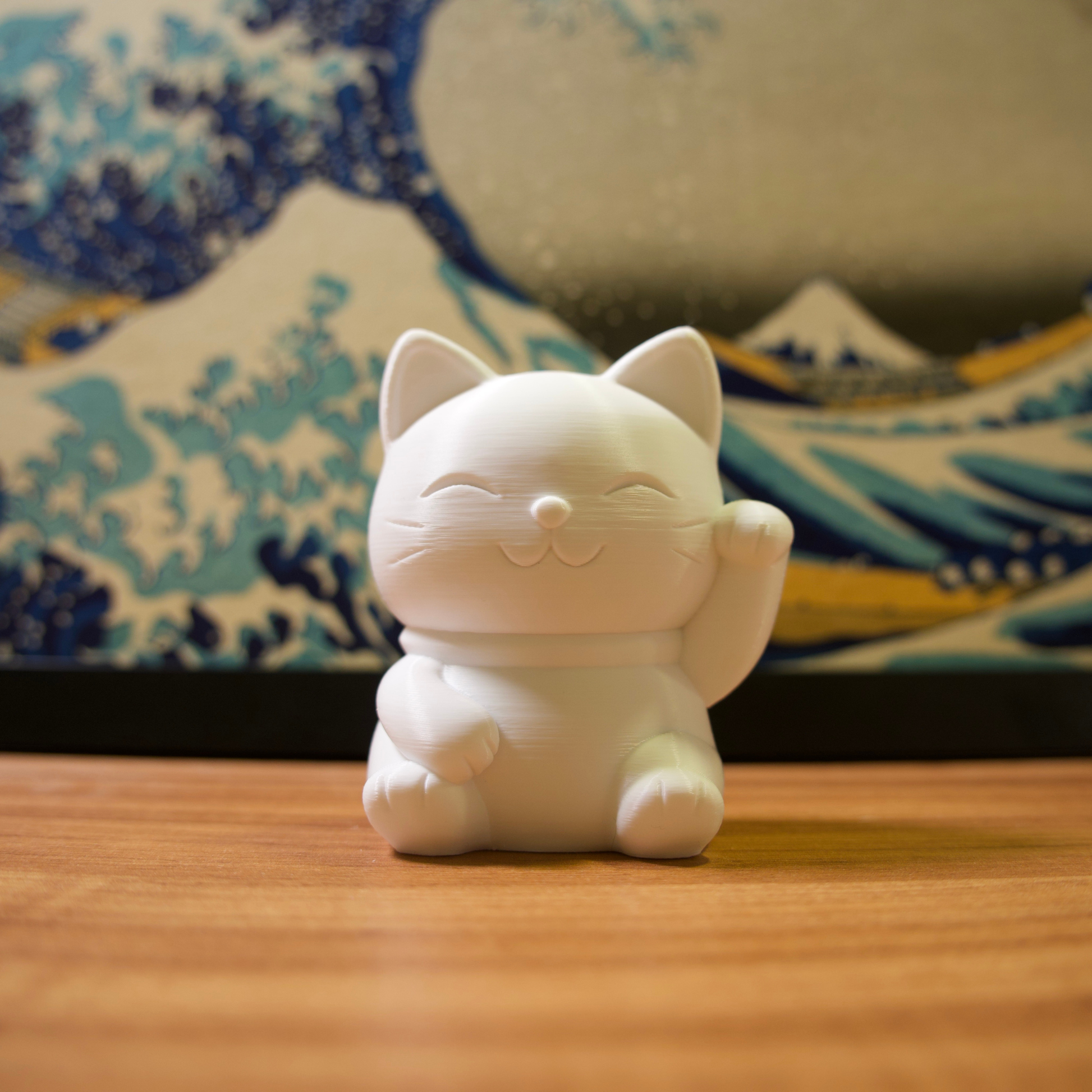 Os gatinhos da sorte são impressos em impressora 3D com filamentos de excelente qualidade e pintados com tinta acrílica para artistas.