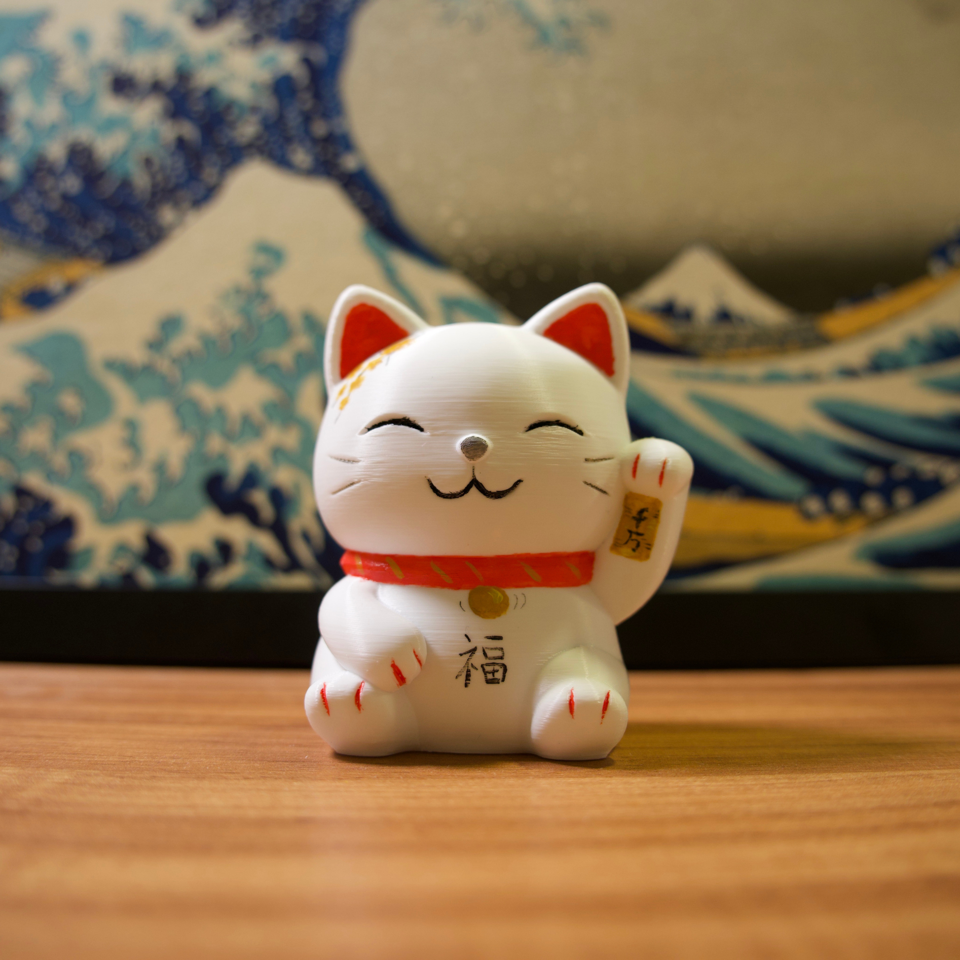 Os gatinhos da sorte são impressos em impressora 3D com filamentos de excelente qualidade e pintados com tinta acrílica para artistas.