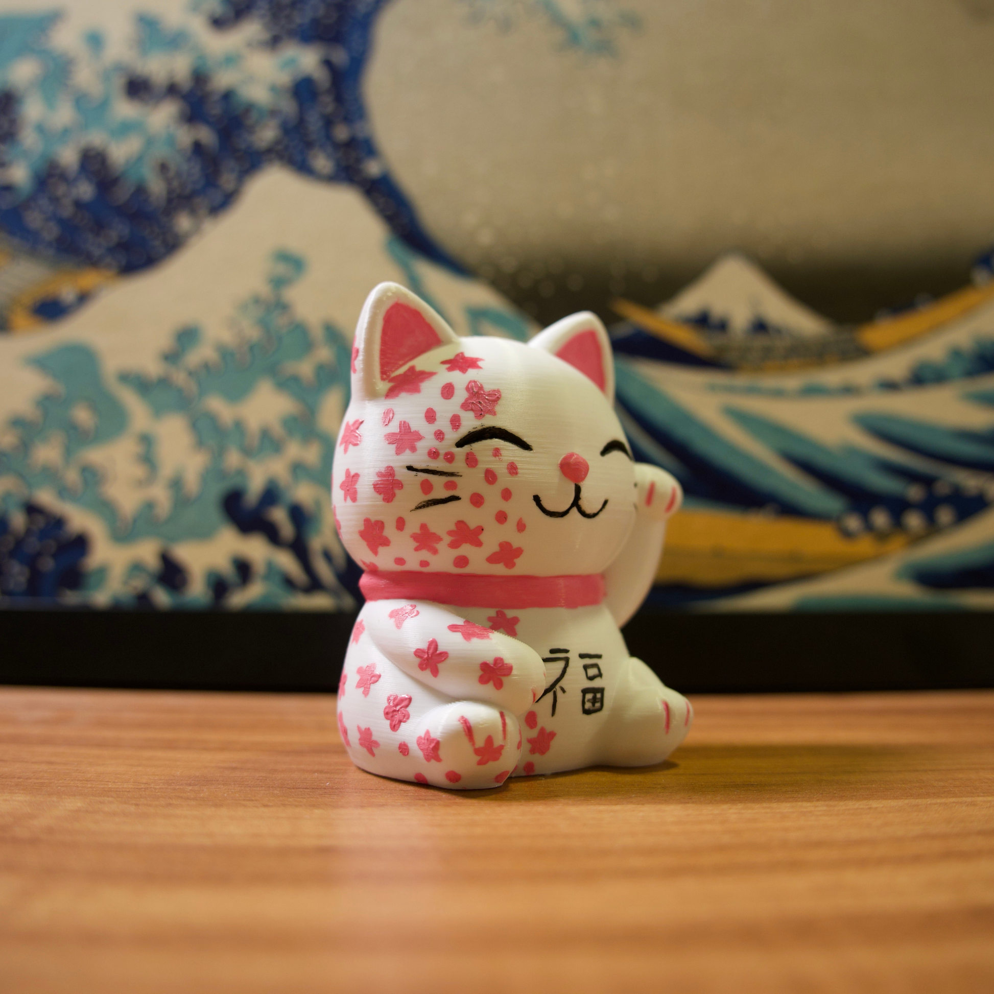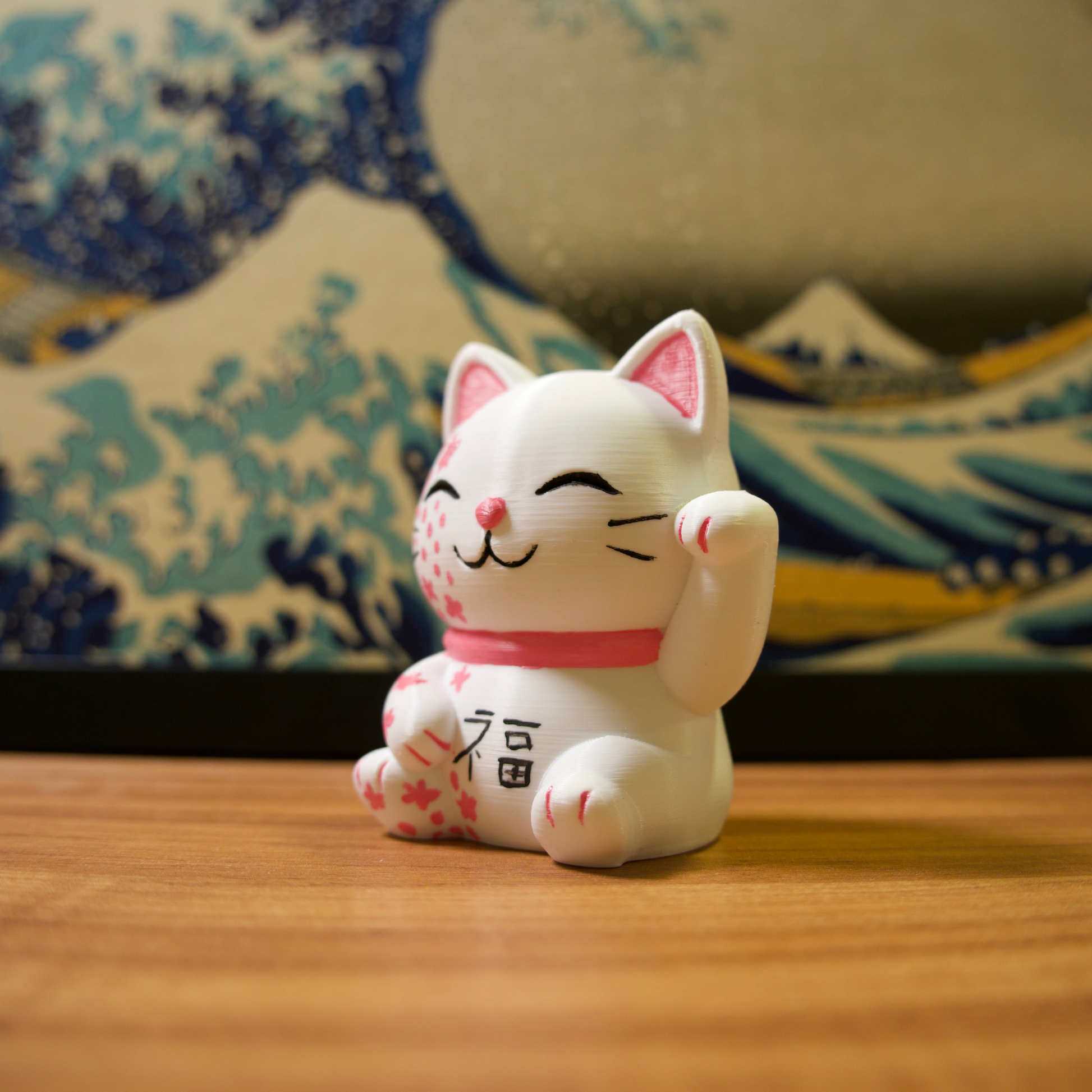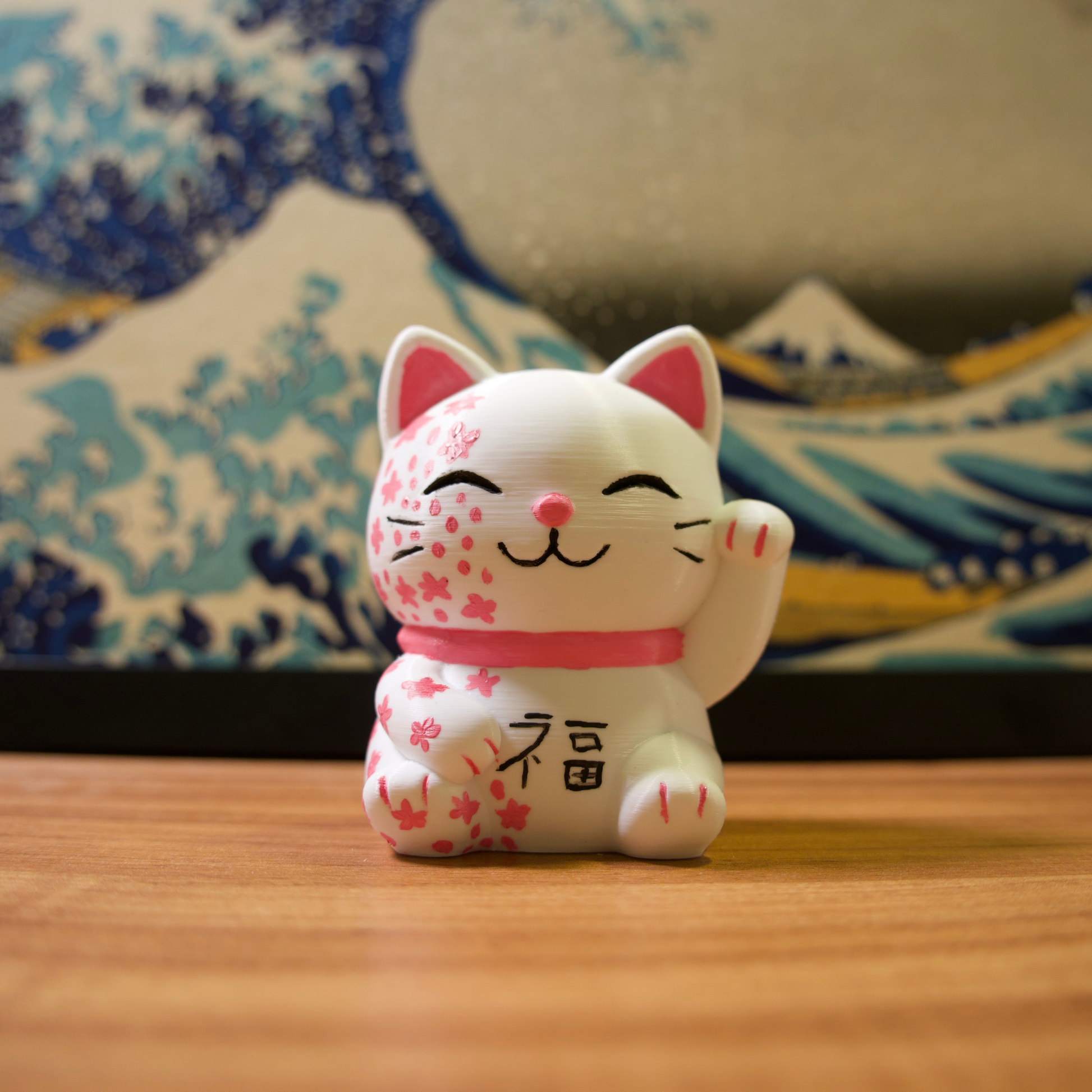 Os gatinhos da sorte são impressos em impressora 3D com filamentos de excelente qualidade e pintados com tinta acrílica para artistas.