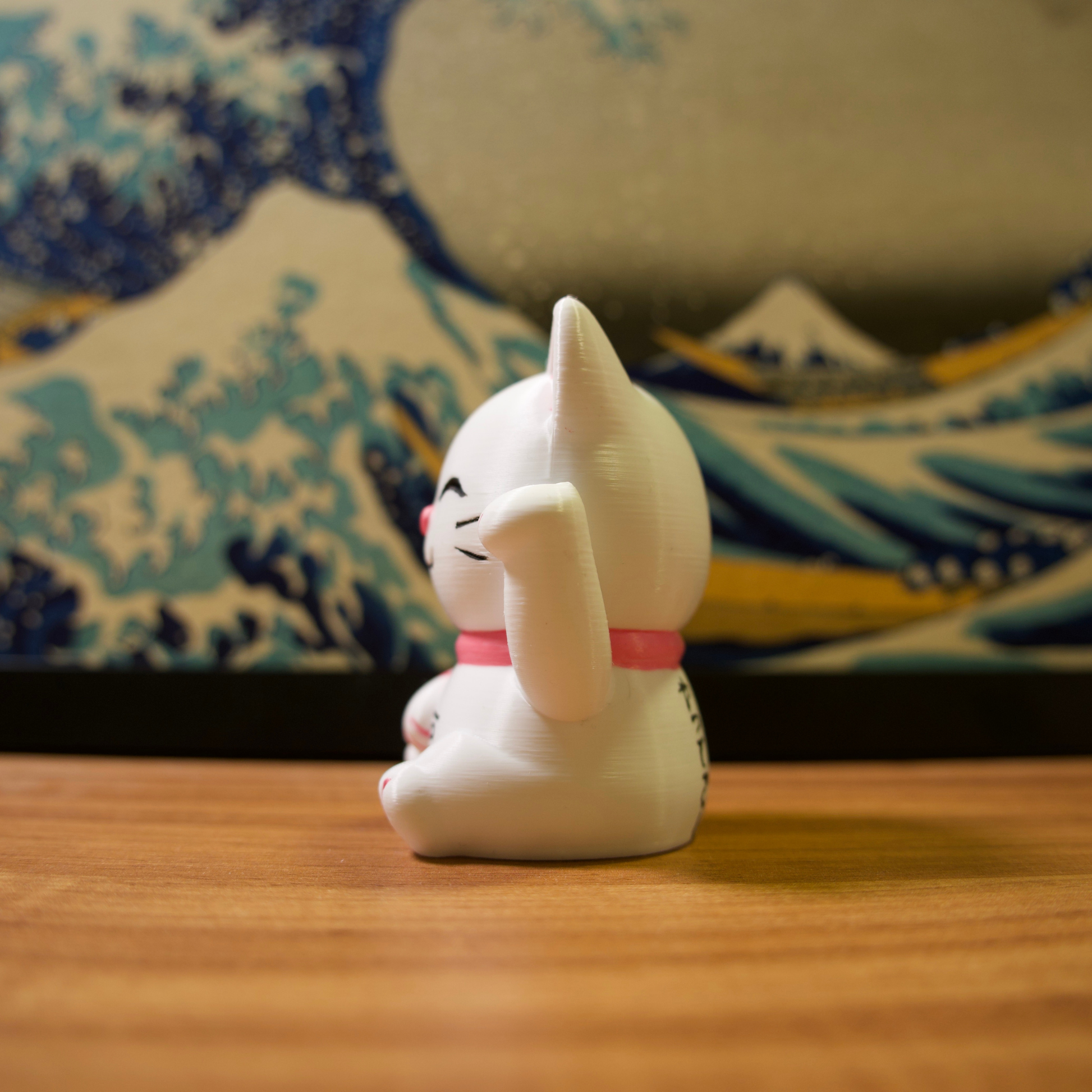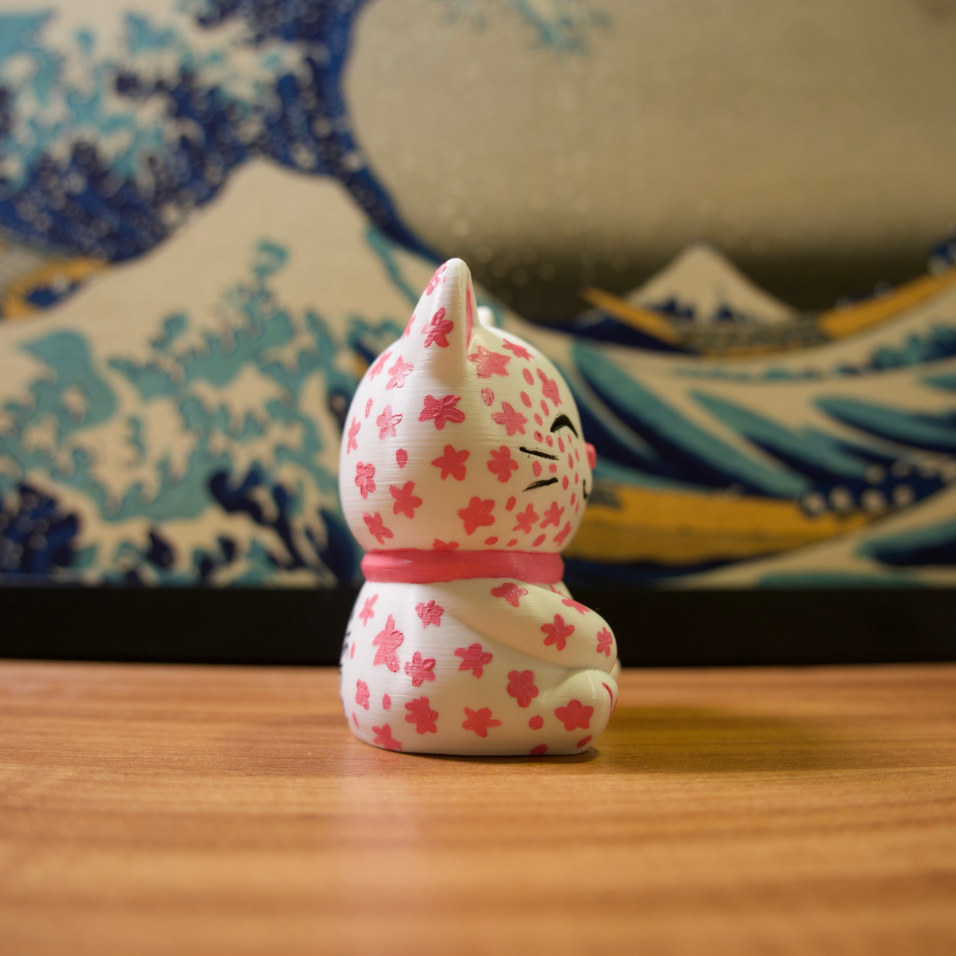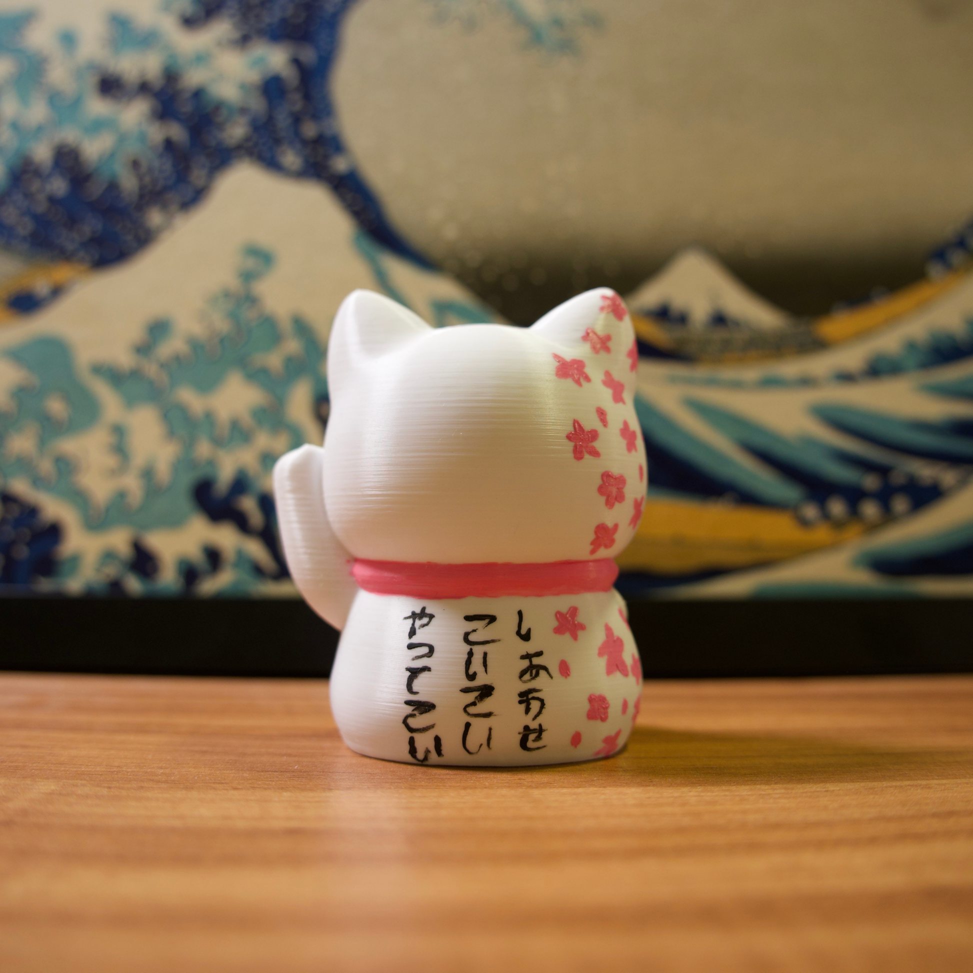 Os gatinhos da sorte são impressos em impressora 3D com filamentos de excelente qualidade e pintados com tinta acrílica para artistas.