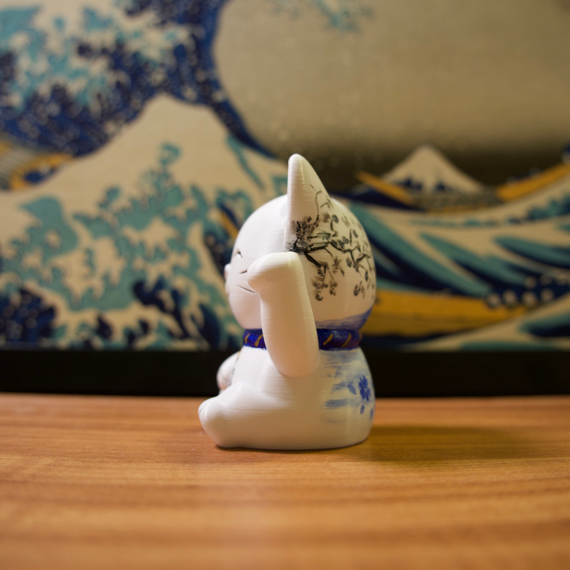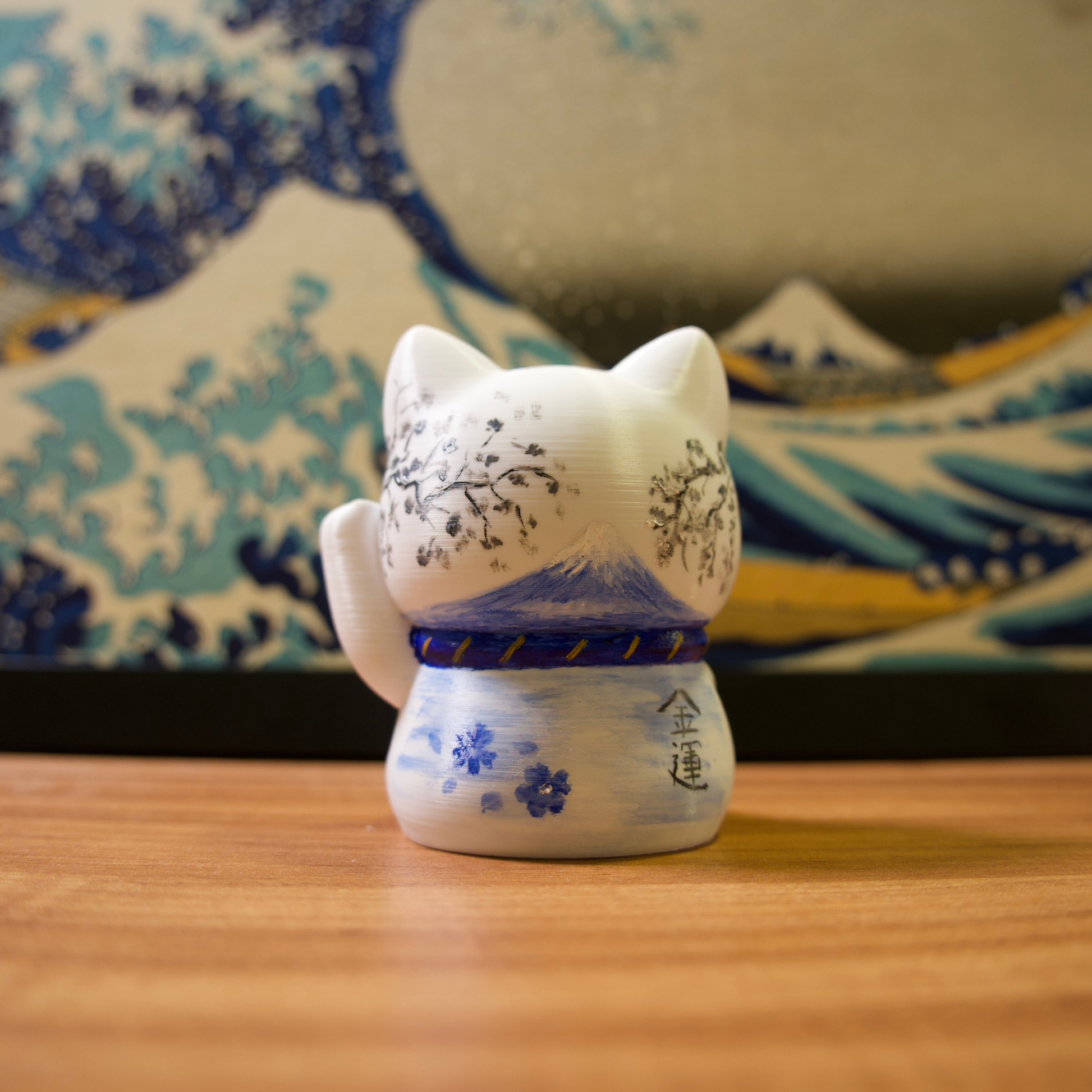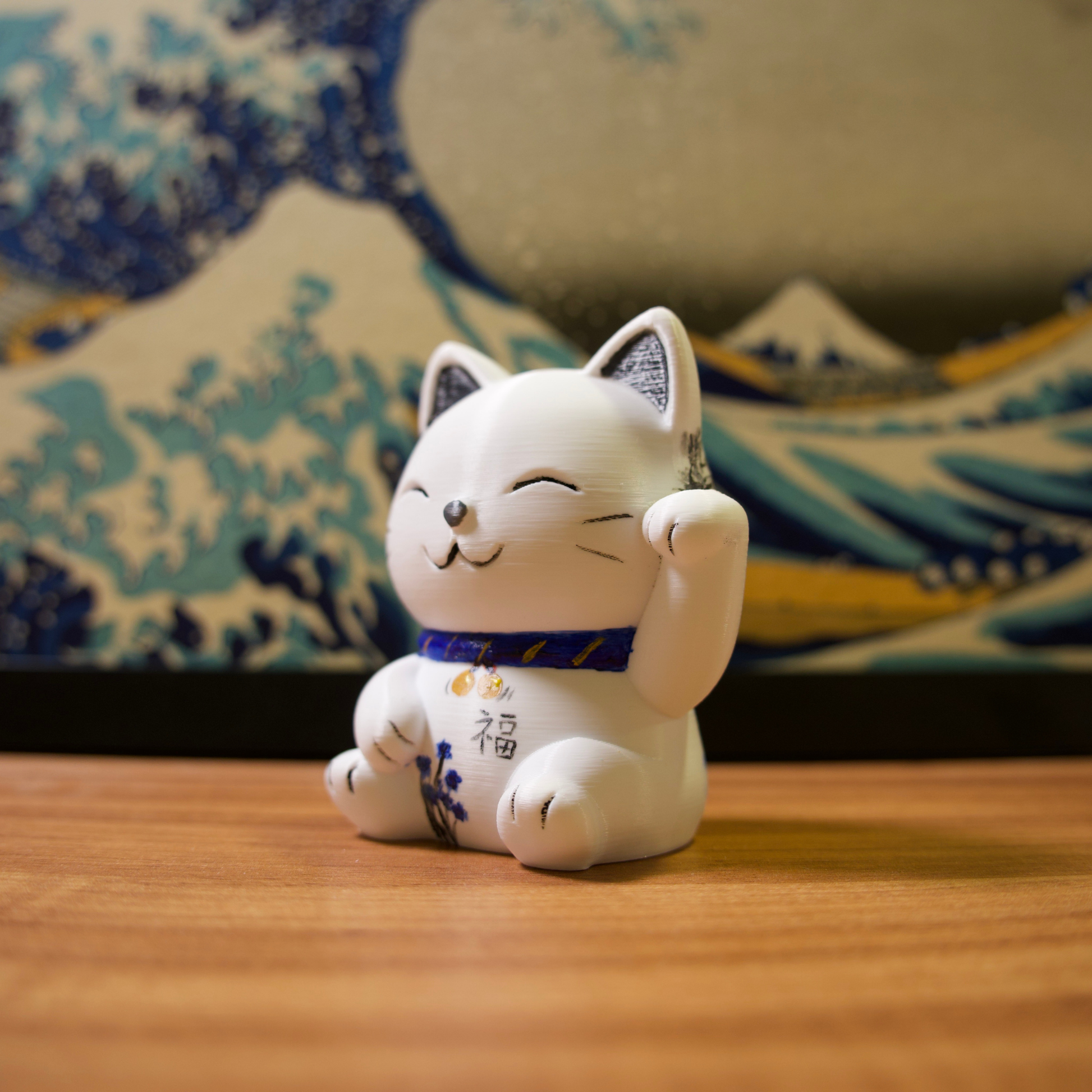 Os gatinhos da sorte são impressos em impressora 3D com filamentos de excelente qualidade e pintados com tinta acrílica para artistas.