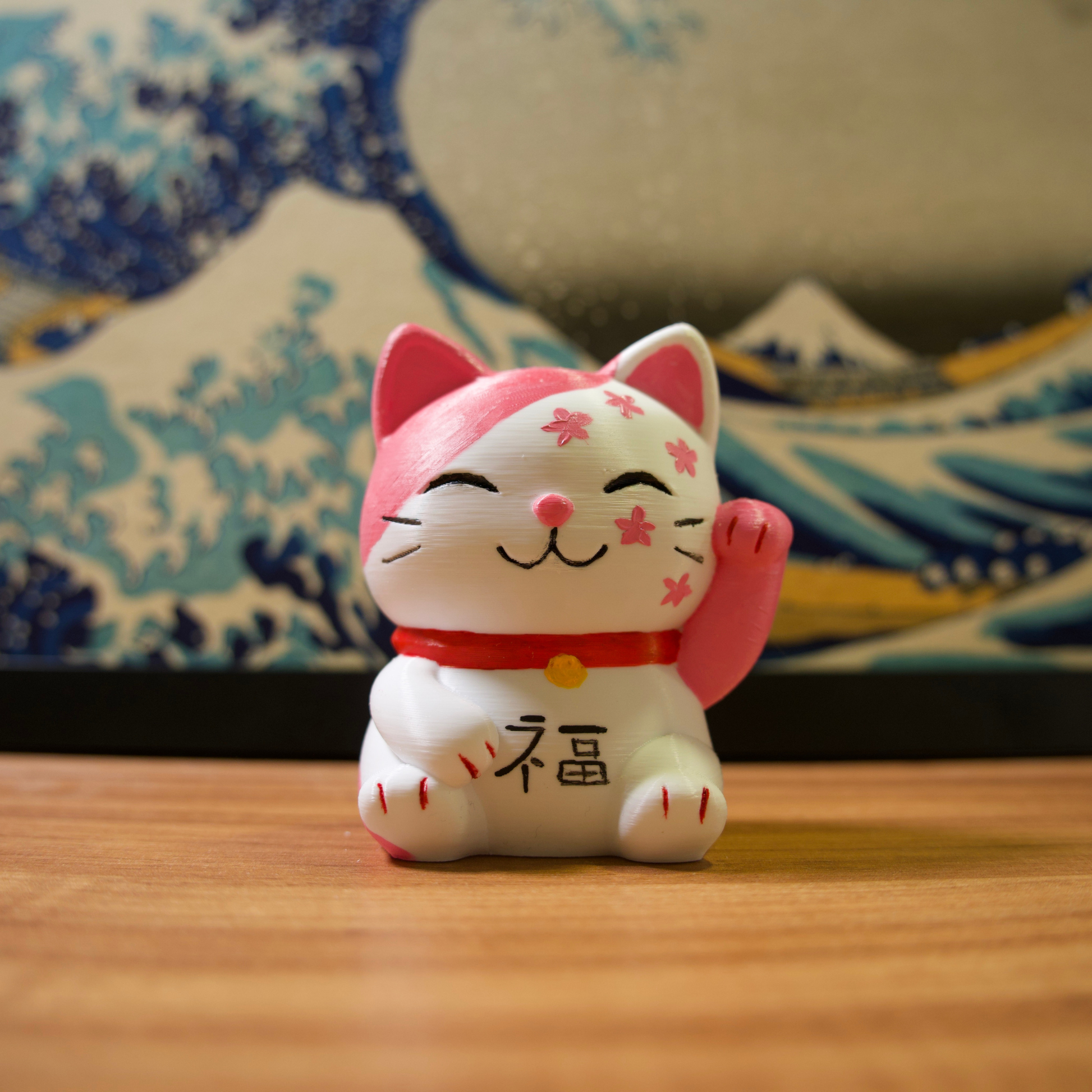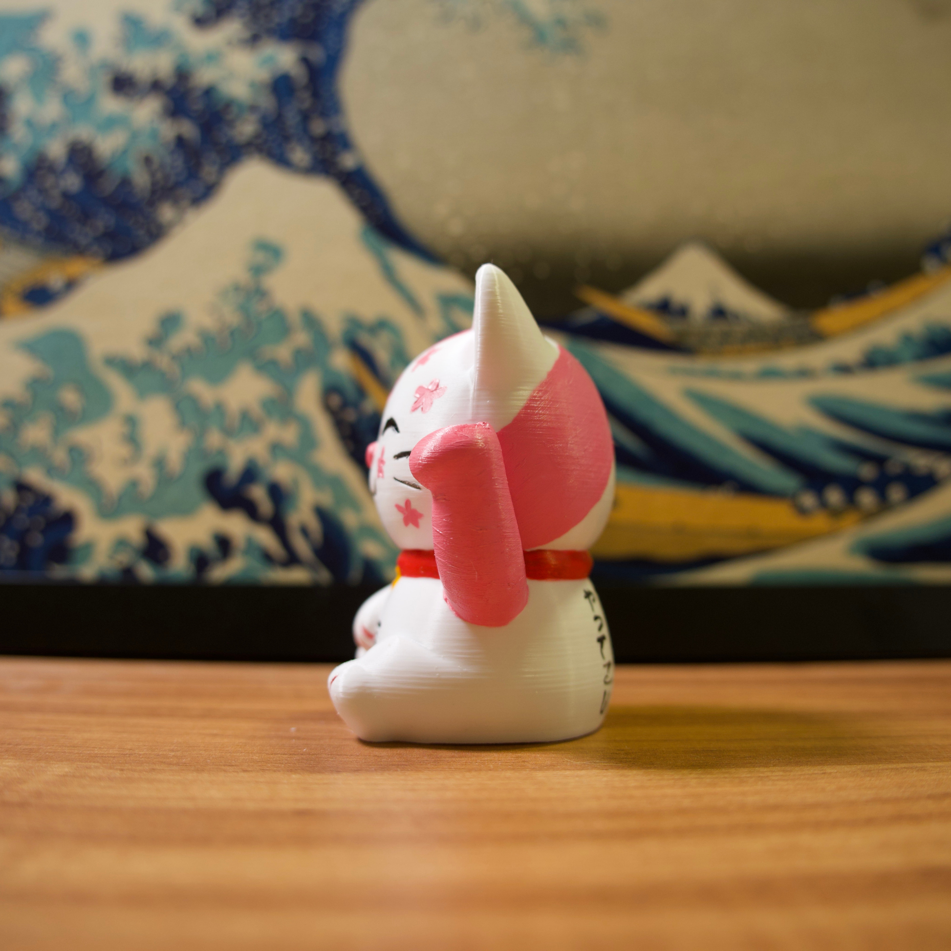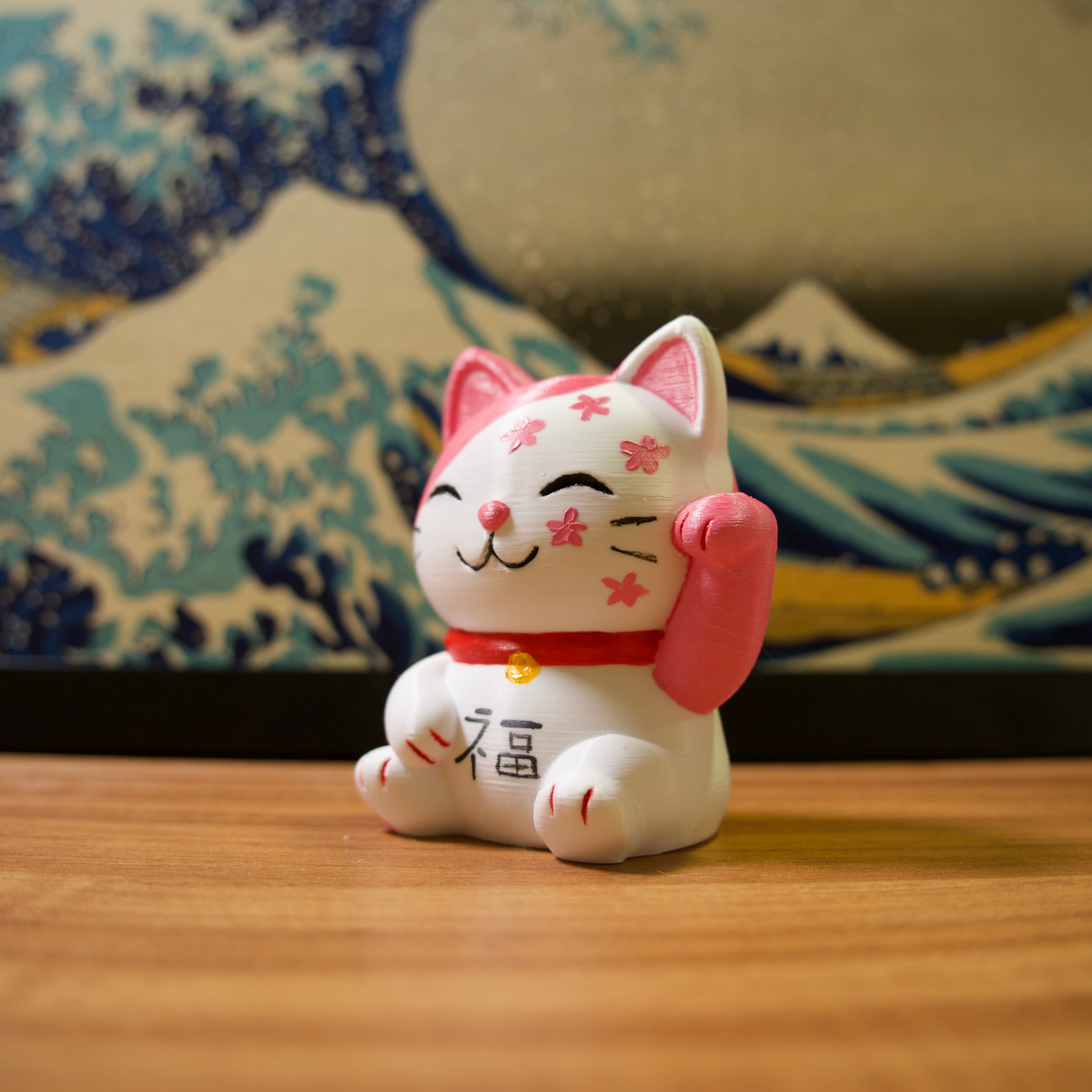 Os gatinhos da sorte são impressos em impressora 3D com filamentos de excelente qualidade e pintados com tinta acrílica para artistas.