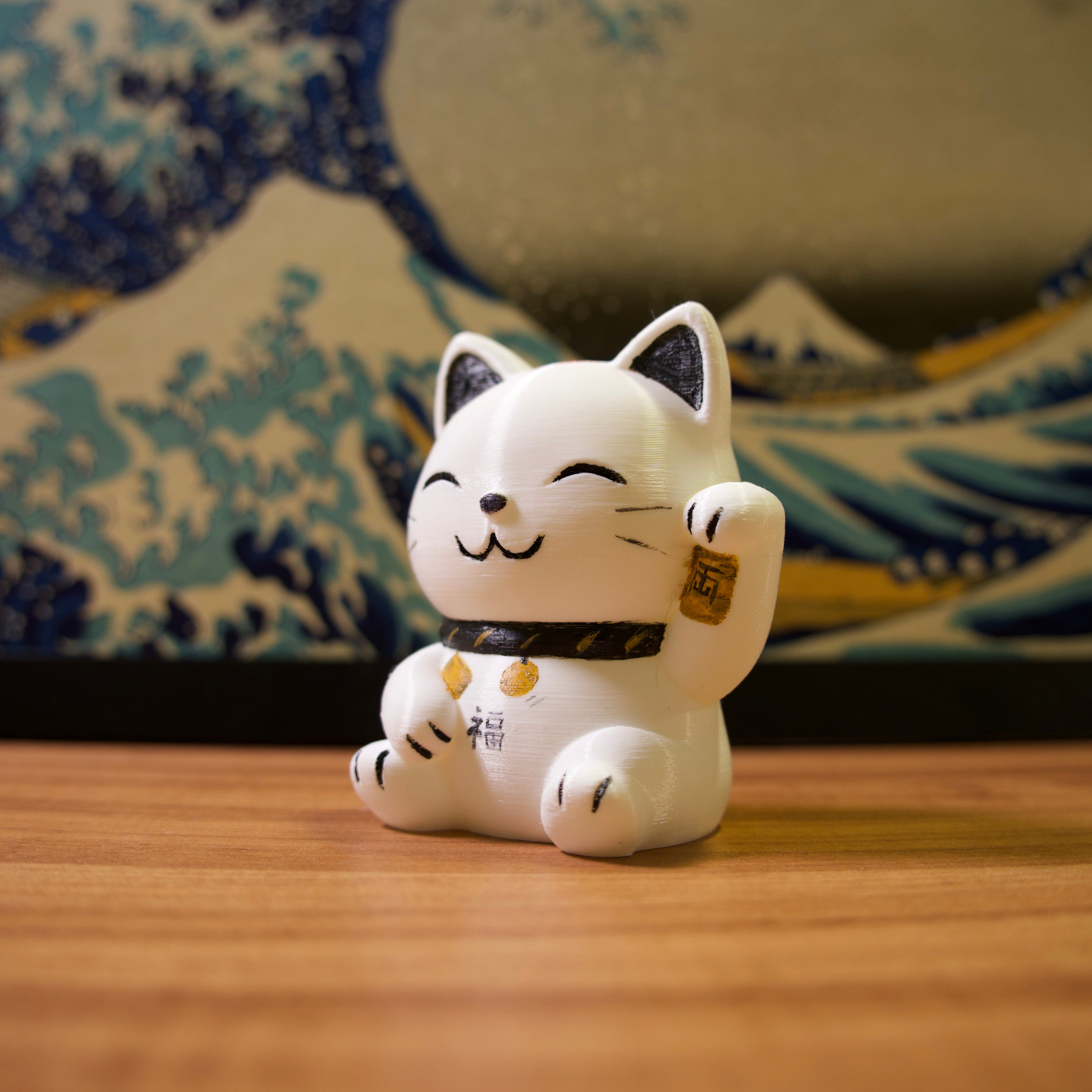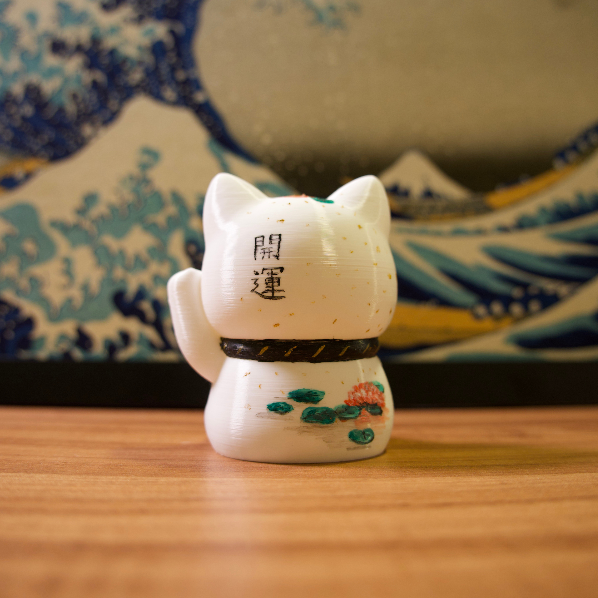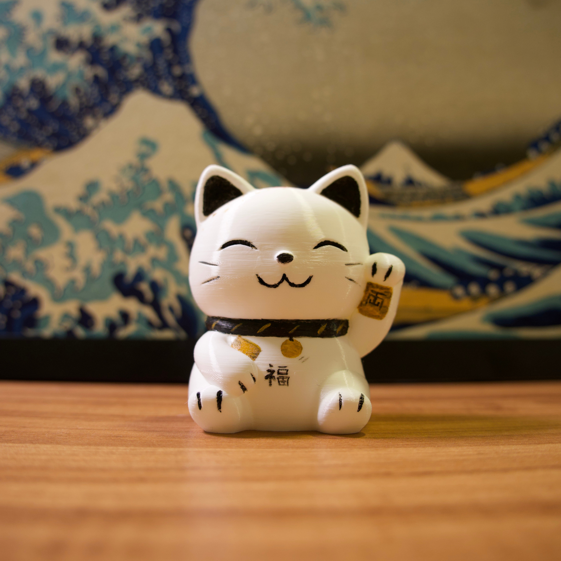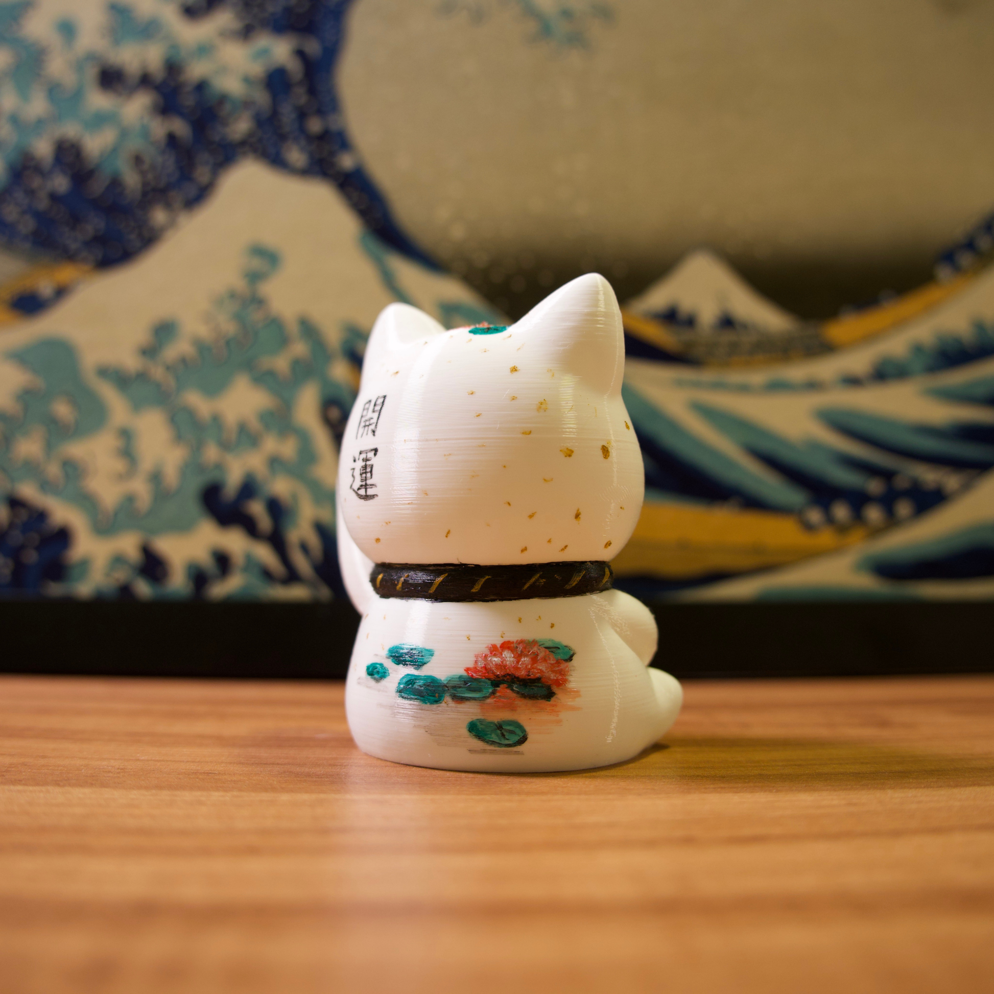 Os gatinhos da sorte são impressos em impressora 3D com filamentos de excelente qualidade e pintados com tinta acrílica para artistas.