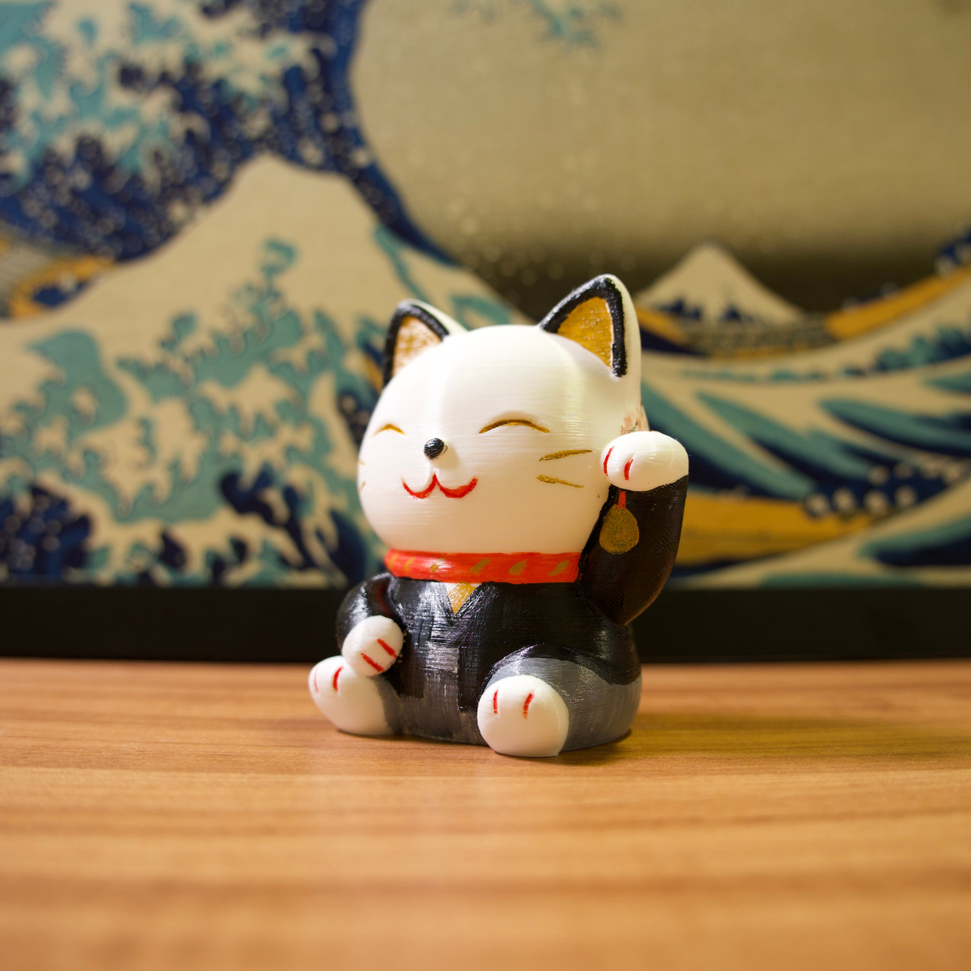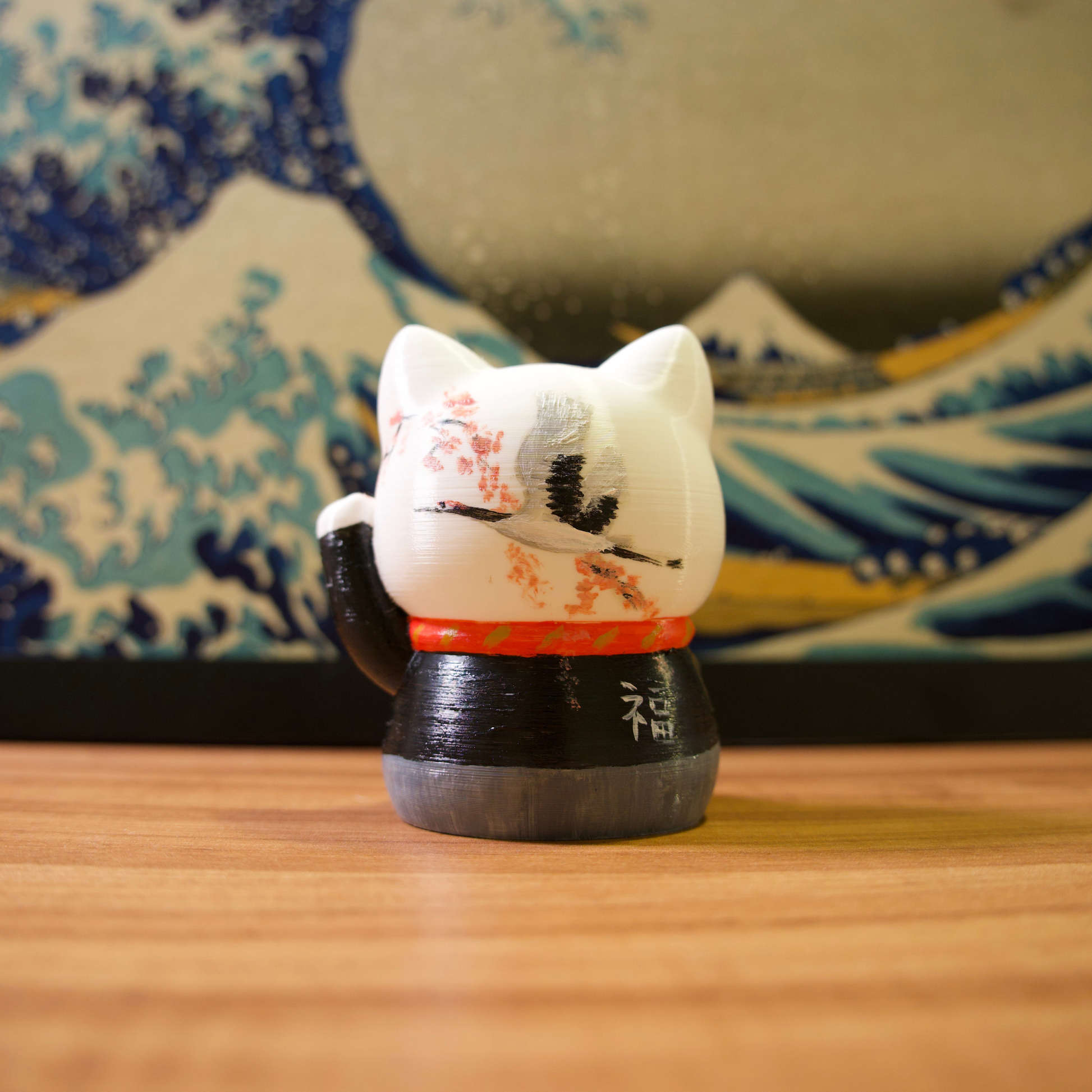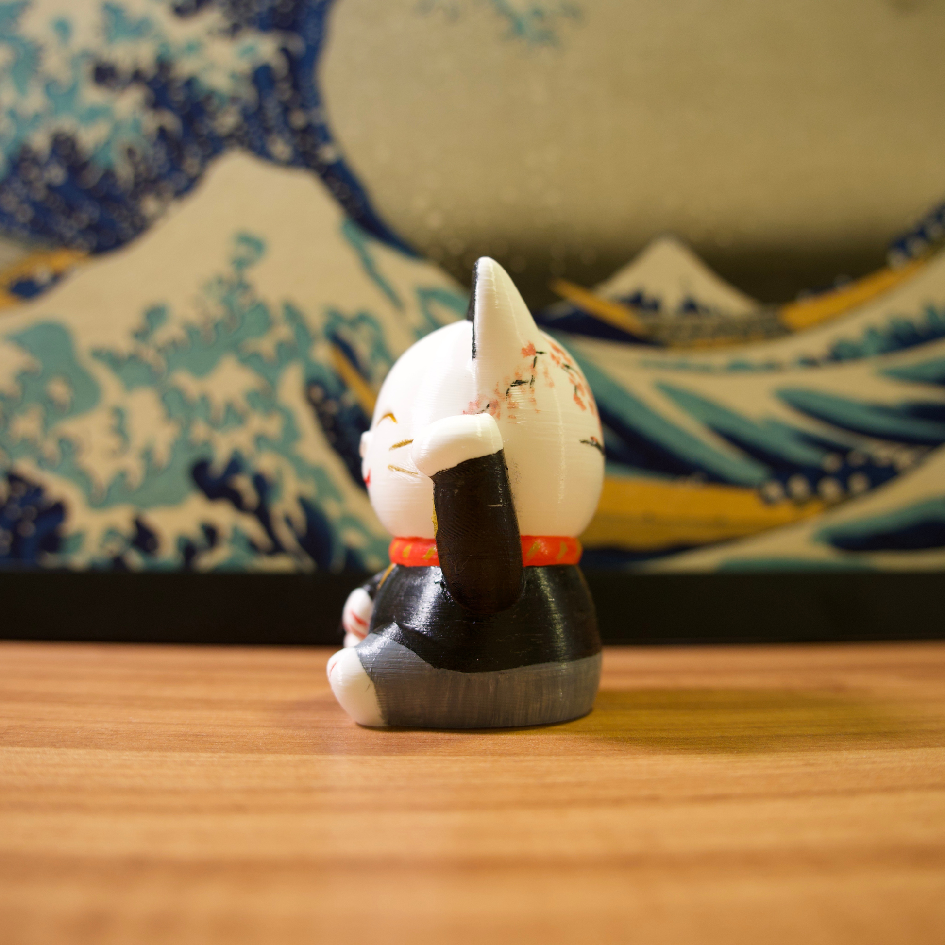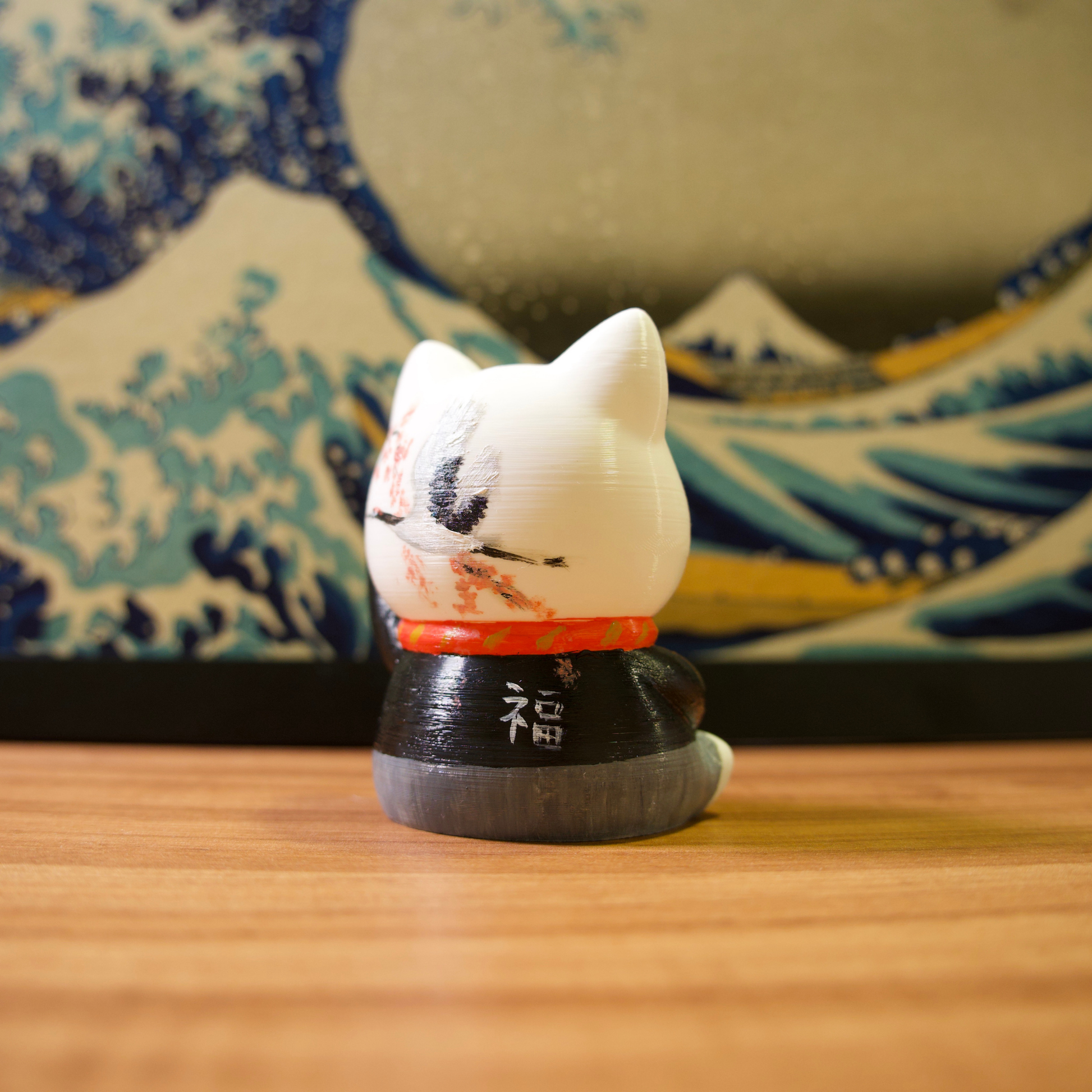 Os gatinhos da sorte são impressos em impressora 3D com filamentos de excelente qualidade e pintados com tinta acrílica para artistas.