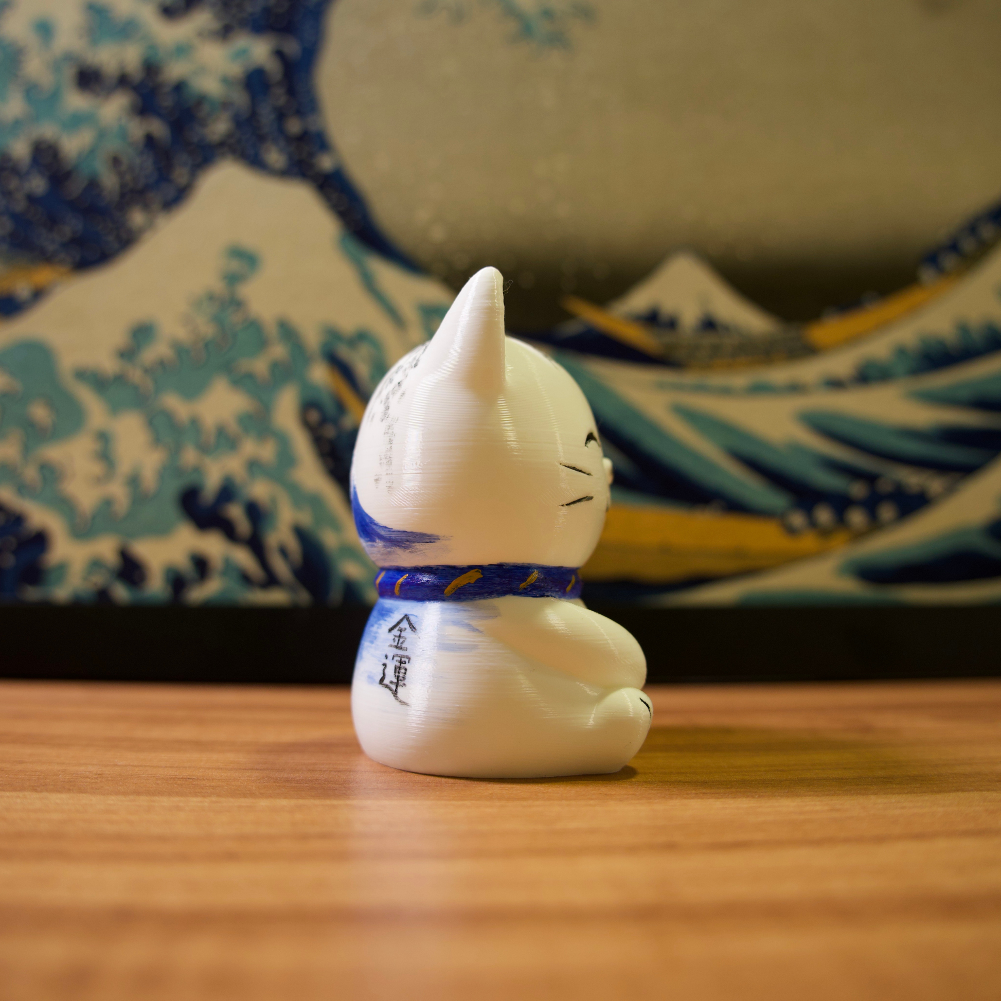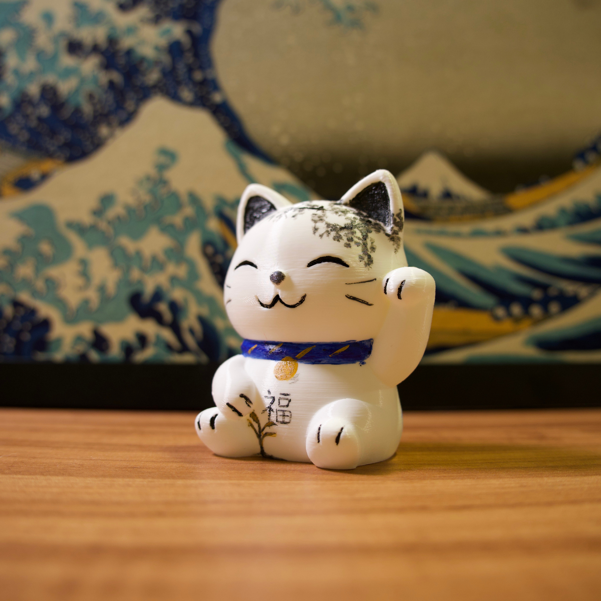 Os gatinhos da sorte são impressos em impressora 3D com filamentos de excelente qualidade e pintados com tinta acrílica para artistas.