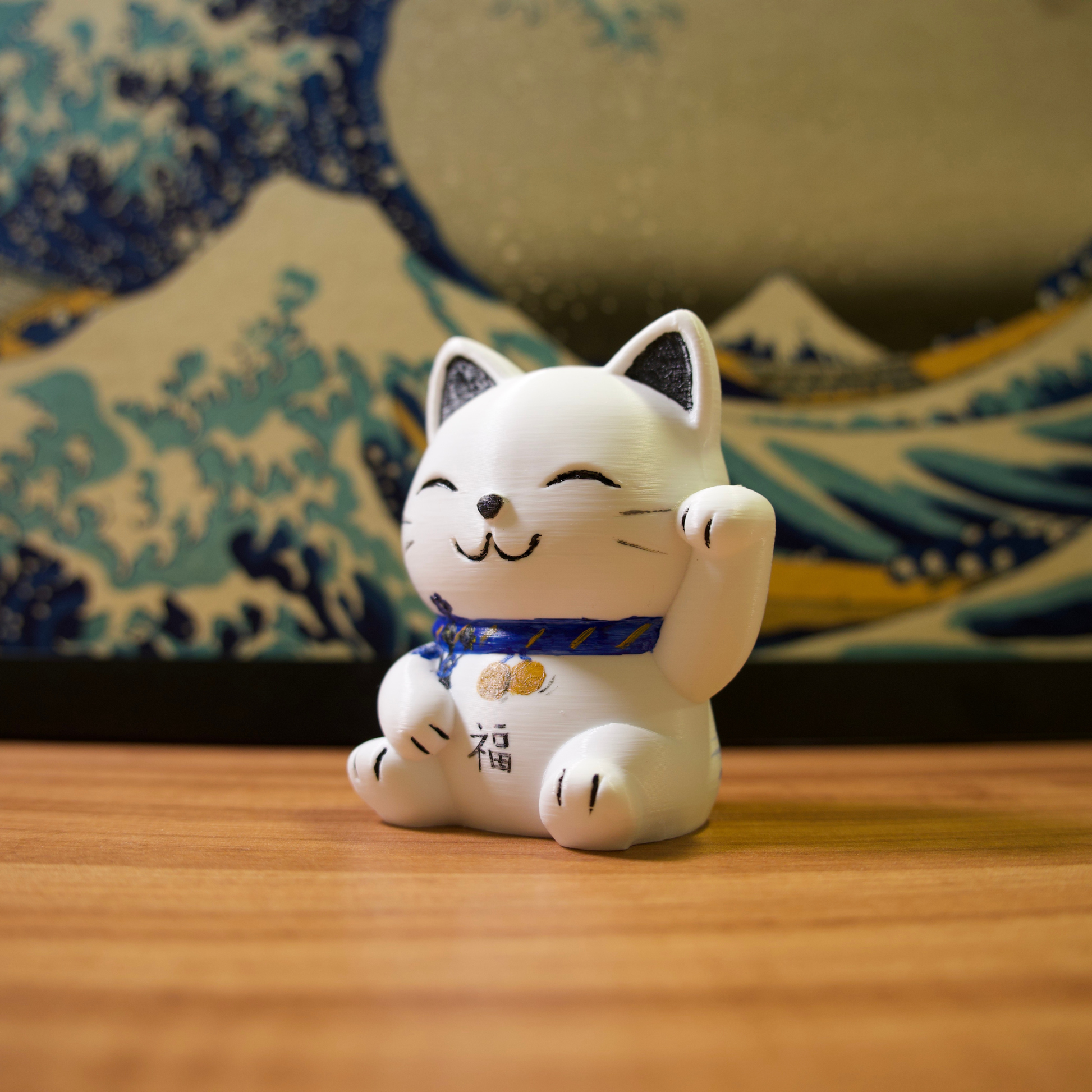 Os gatinhos da sorte são impressos em impressora 3D com filamentos de excelente qualidade e pintados com tinta acrílica para artistas.