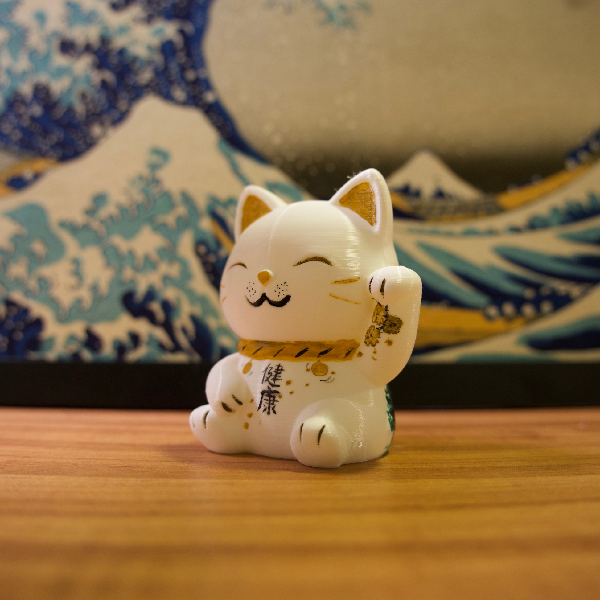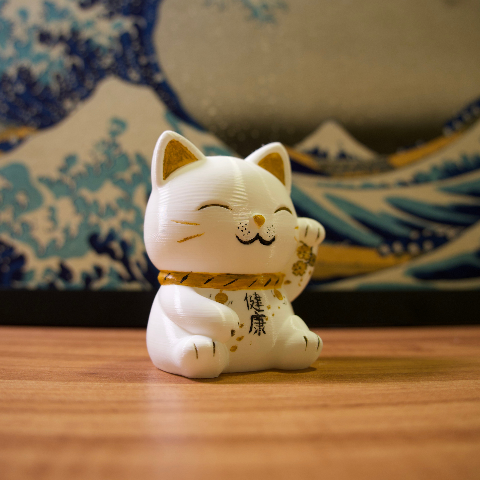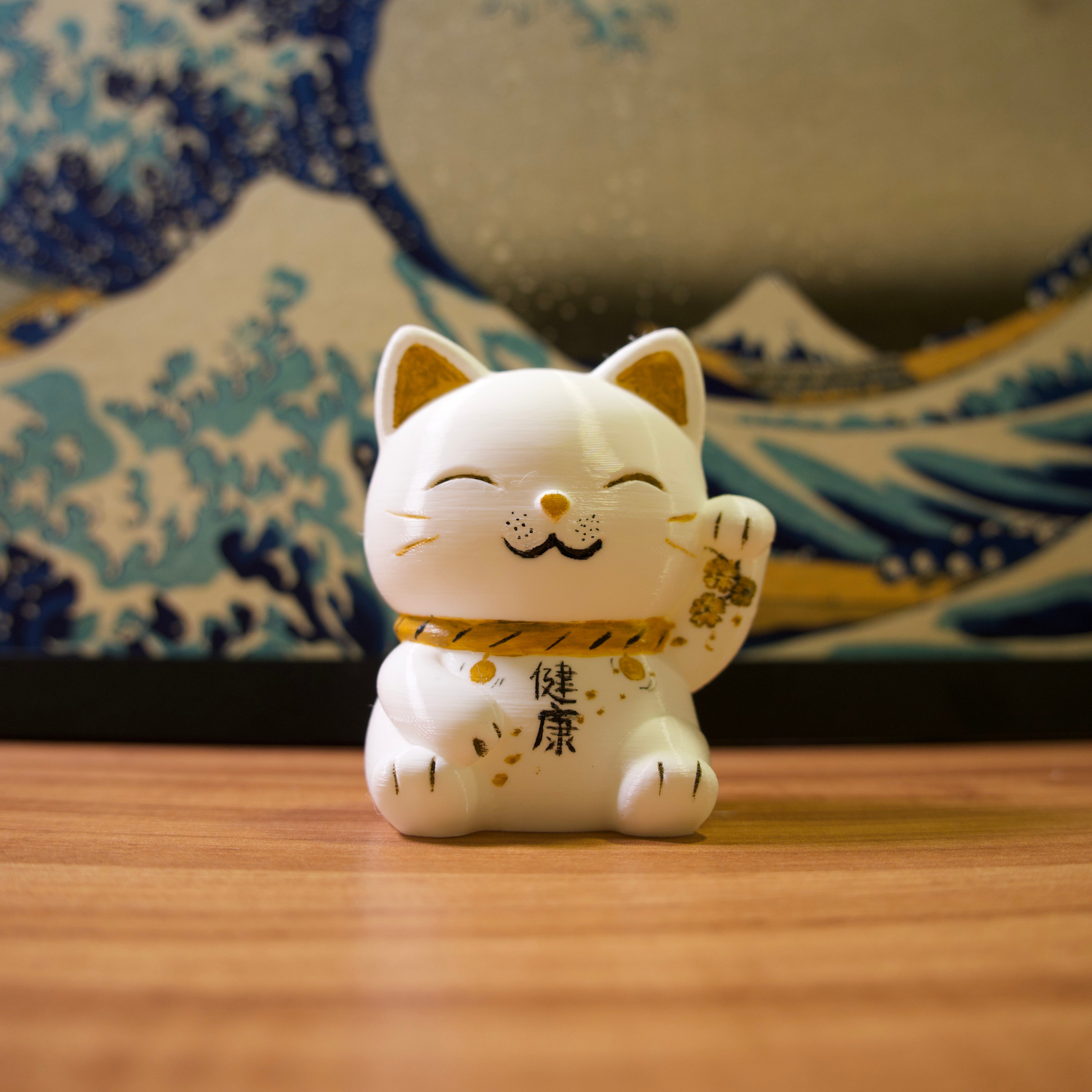 Os gatinhos da sorte são impressos em impressora 3D com filamentos de excelente qualidade e pintados com tinta acrílica para artistas.