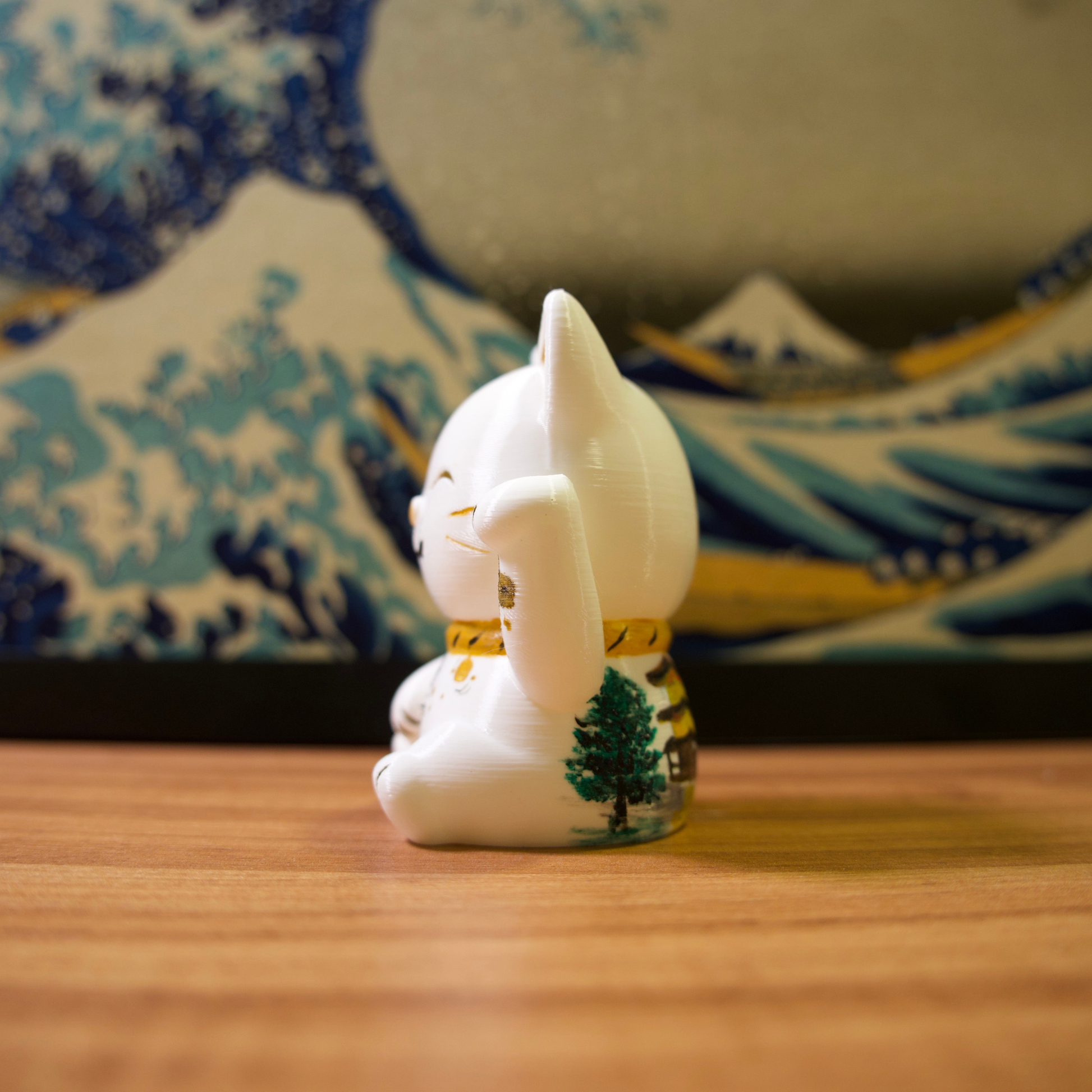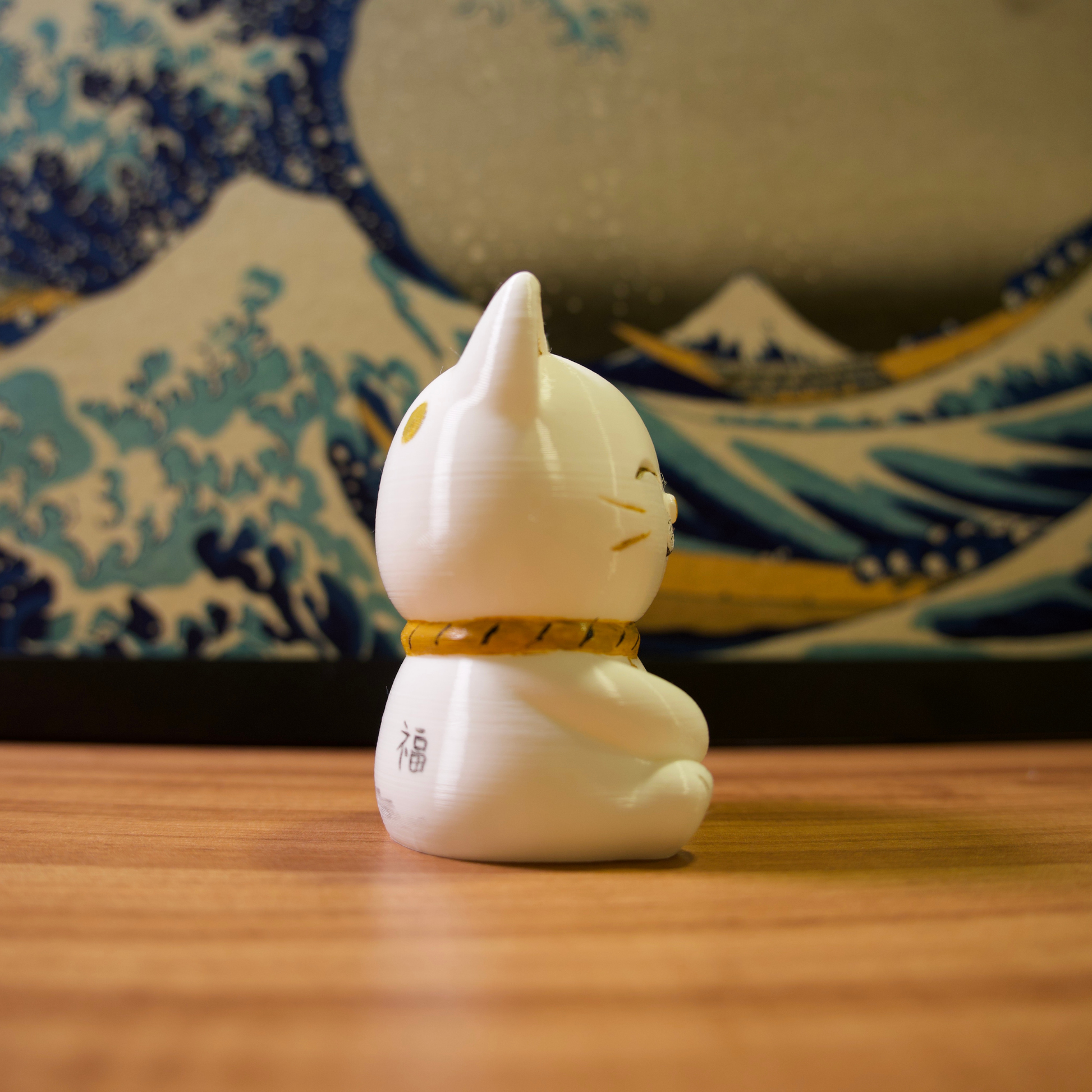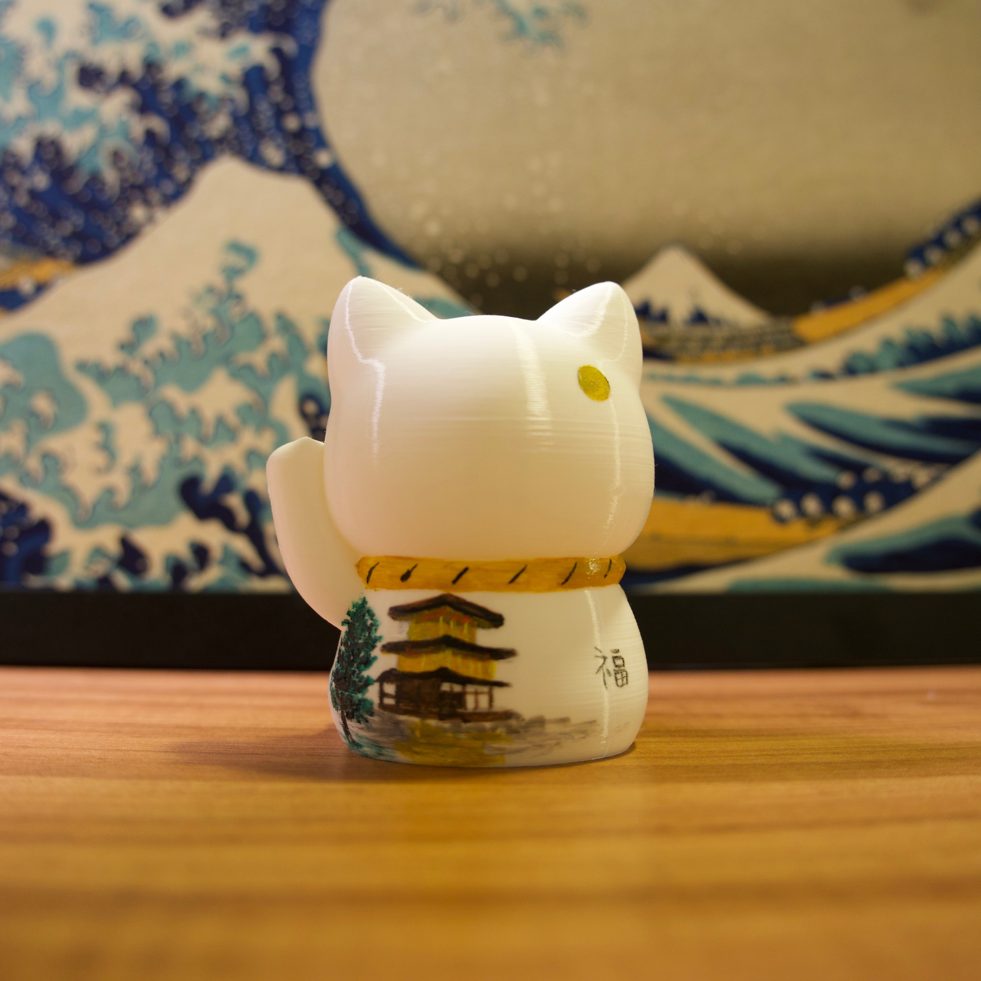 Os gatinhos da sorte são impressos em impressora 3D com filamentos de excelente qualidade e pintados com tinta acrílica para artistas.