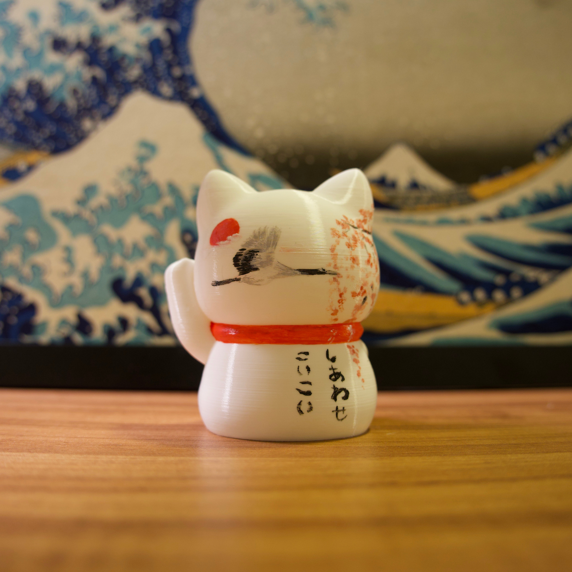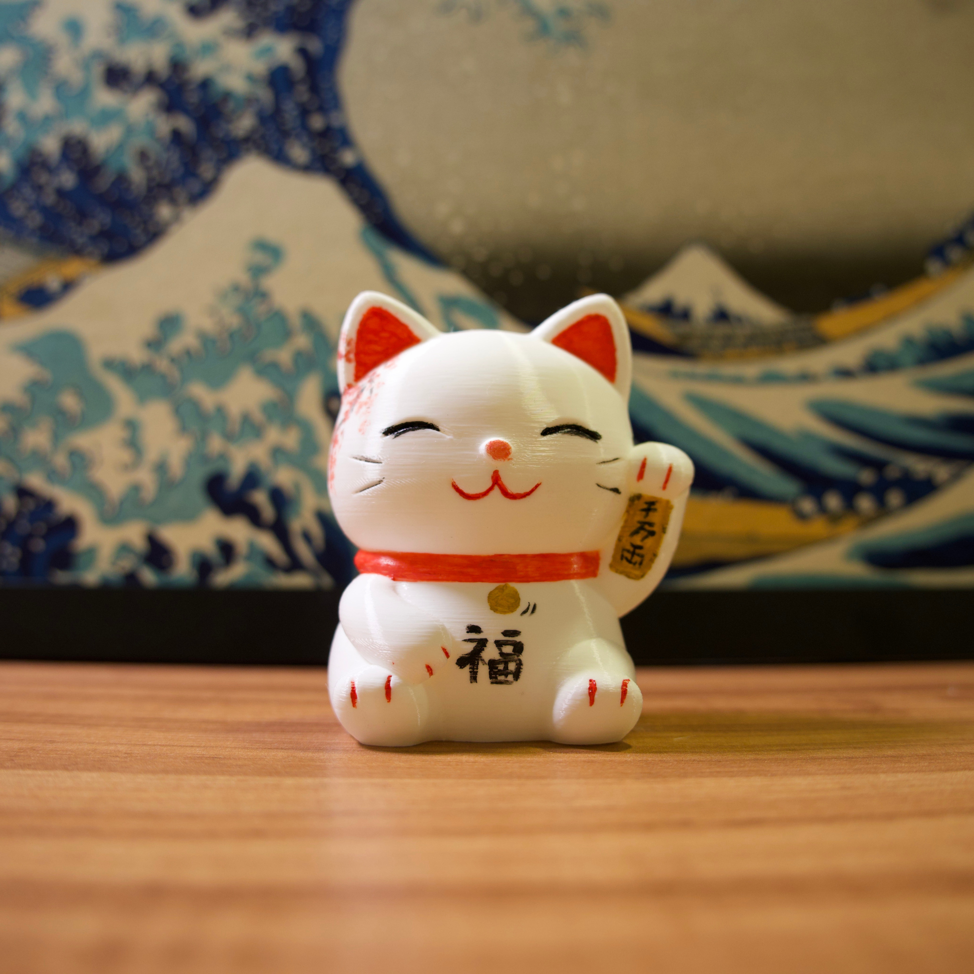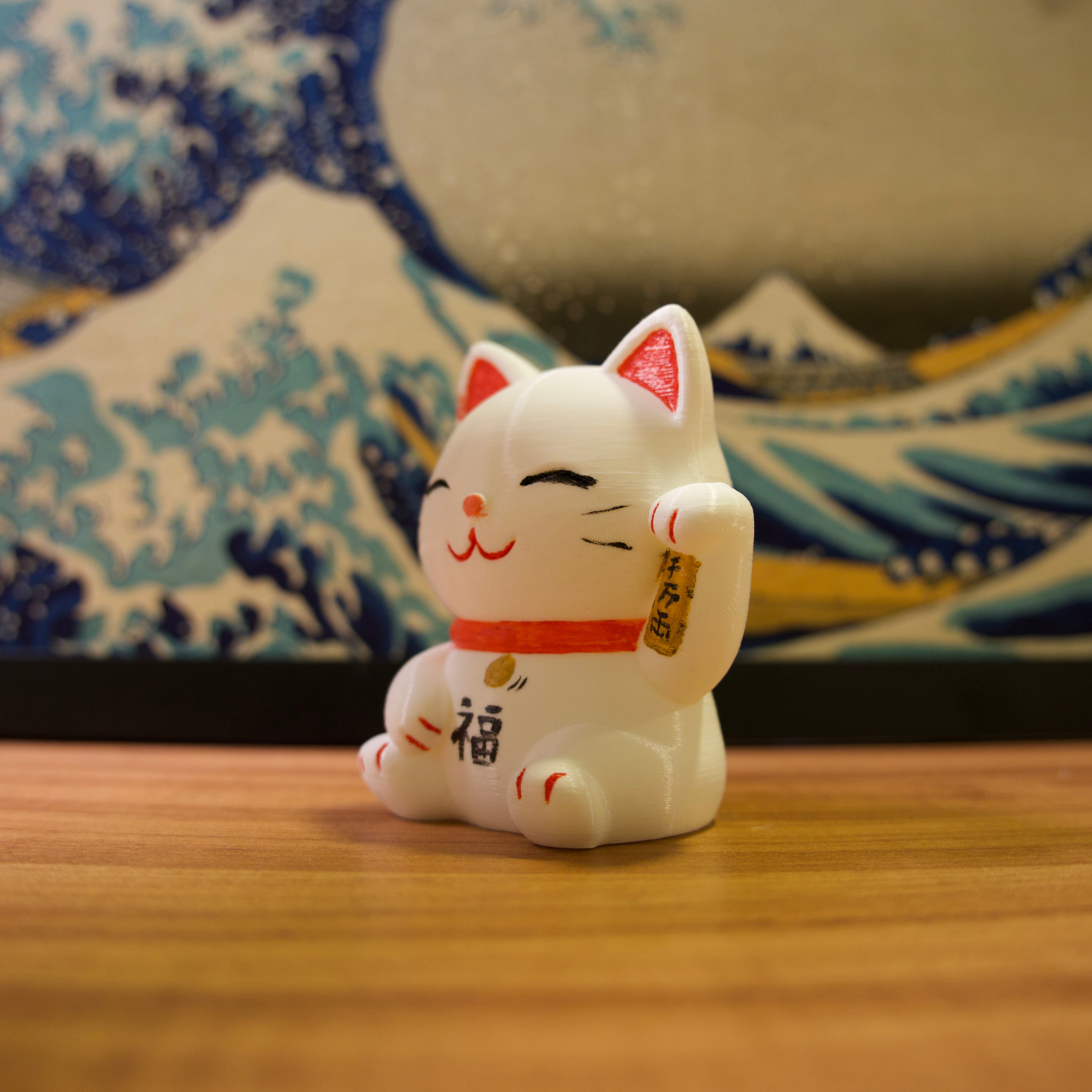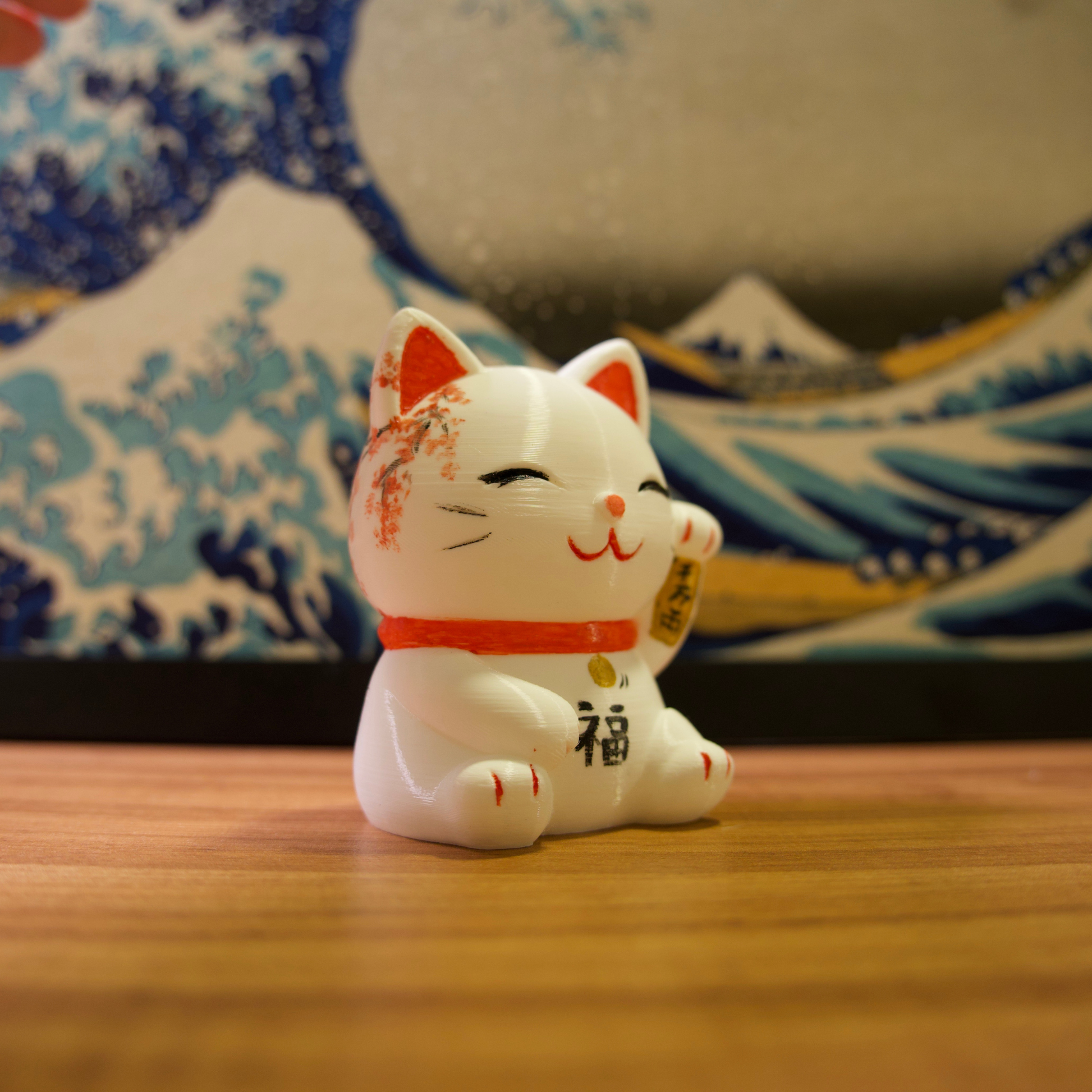 Os gatinhos da sorte são impressos em impressora 3D com filamentos de excelente qualidade e pintados com tinta acrílica para artistas.