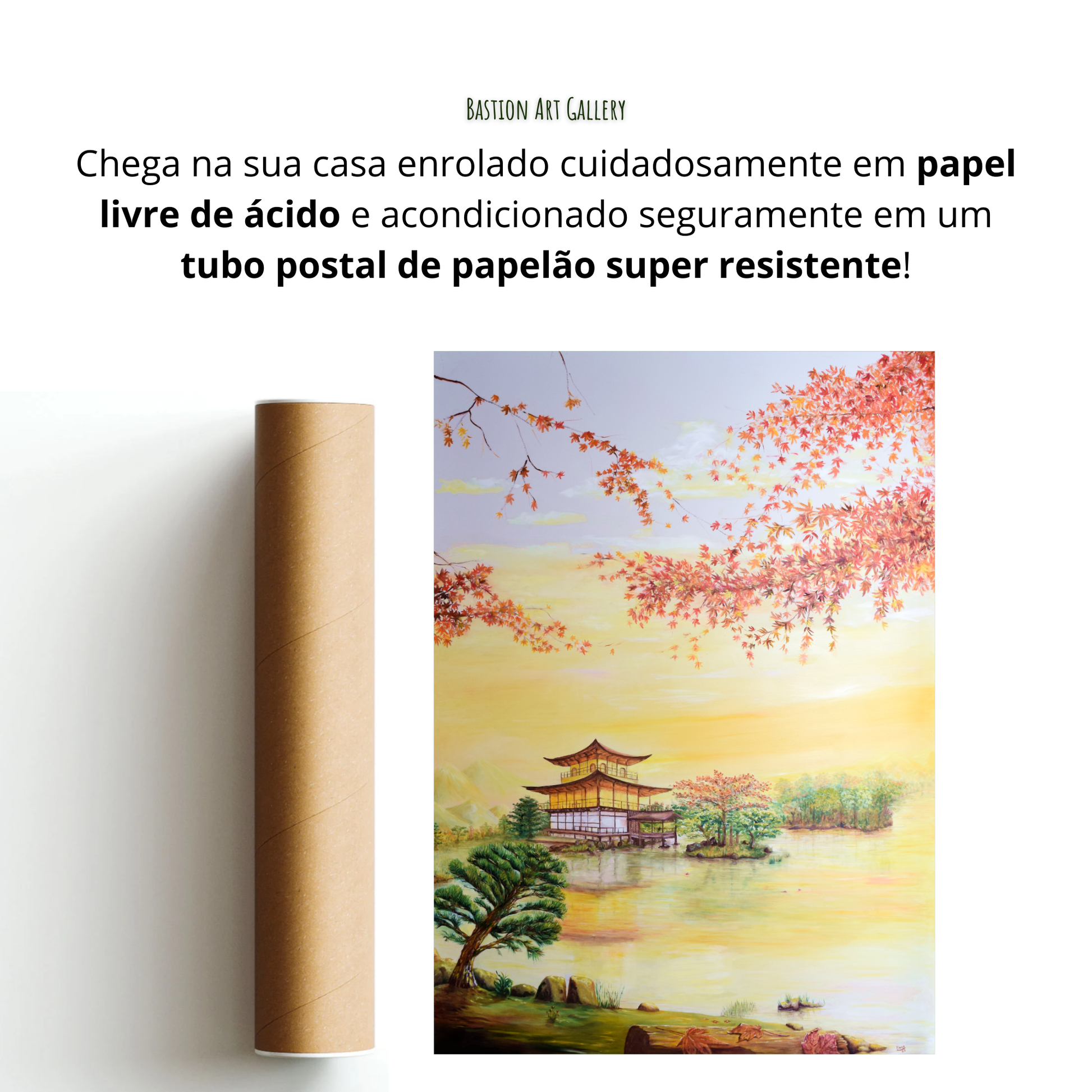 - A obra vai embalada de forma segura, protegida por papel livre de ácido e acondicionada em tubo postal resistente
