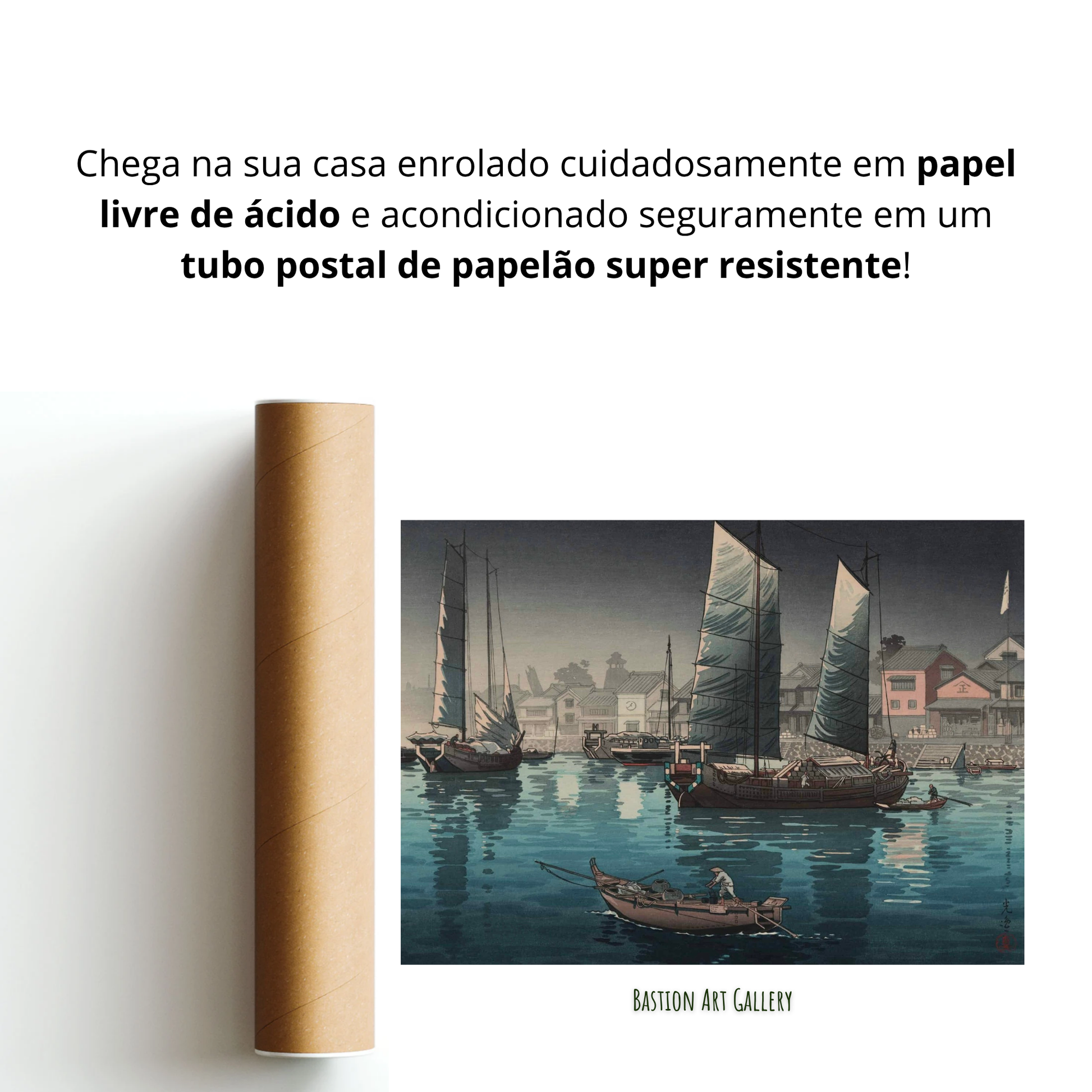 - A obra vai embalada de forma segura, protegida por papel livre de ácido e acondicionada em tubo postal resistente