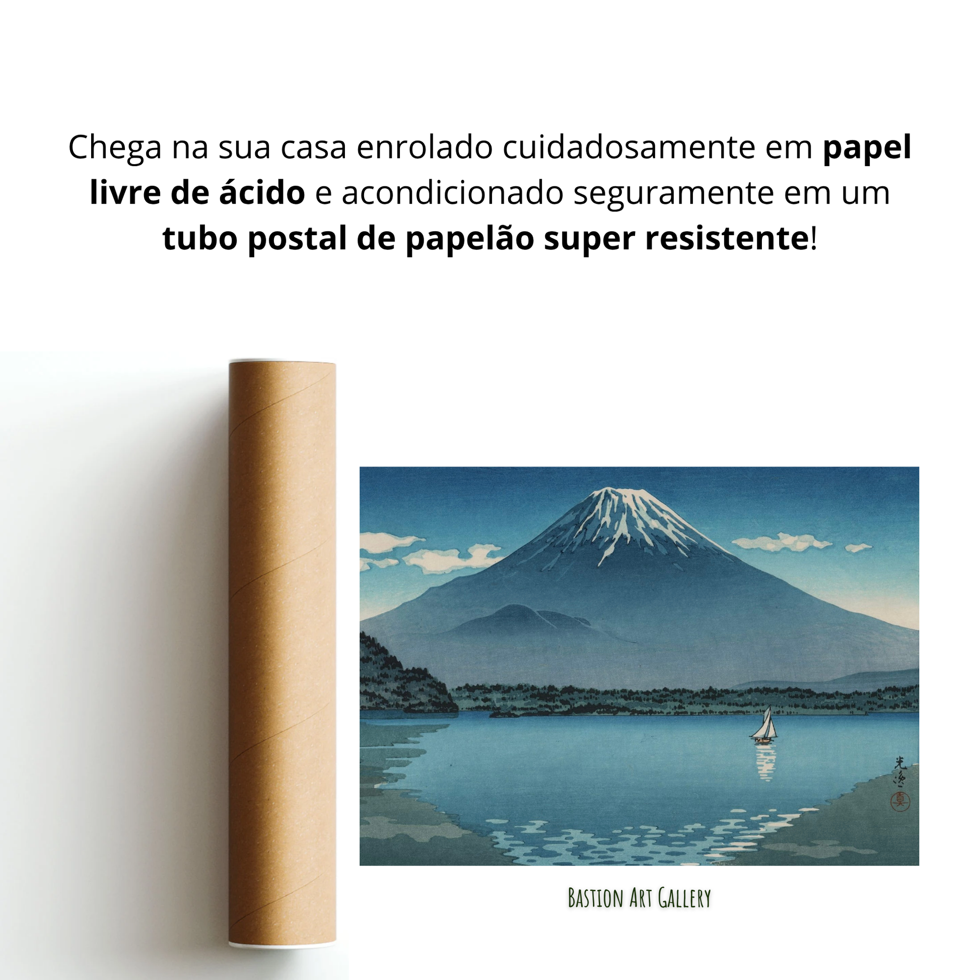 - A obra vai embalada de forma segura, protegida por papel livre de ácido e acondicionada em tubo postal resistente