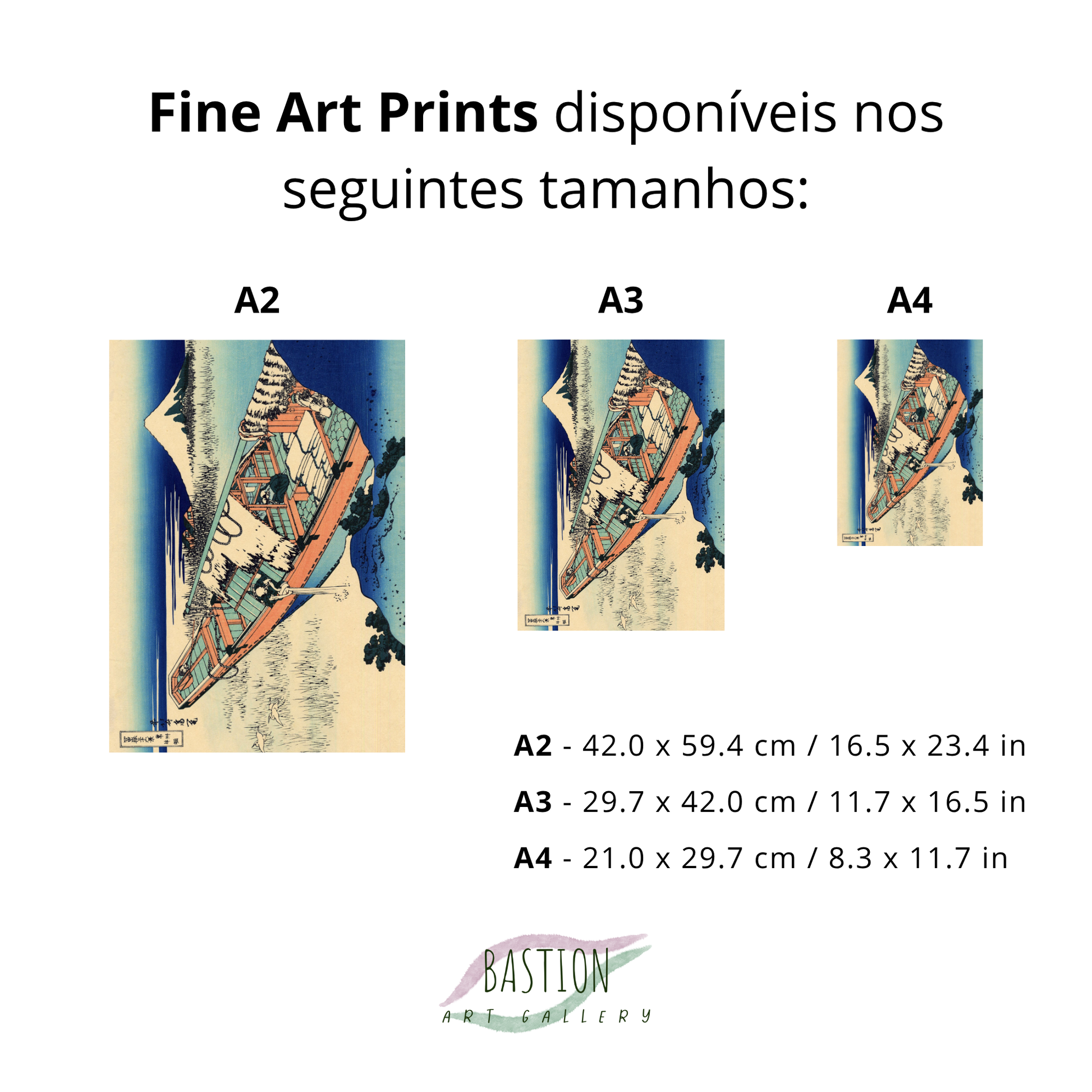 Esta peça destaca a maestria de Hokusai em evocar atmosferas poéticas, usando o Monte Fuji como um símbolo de constância em meio à efemeridade da vida cotidiana.