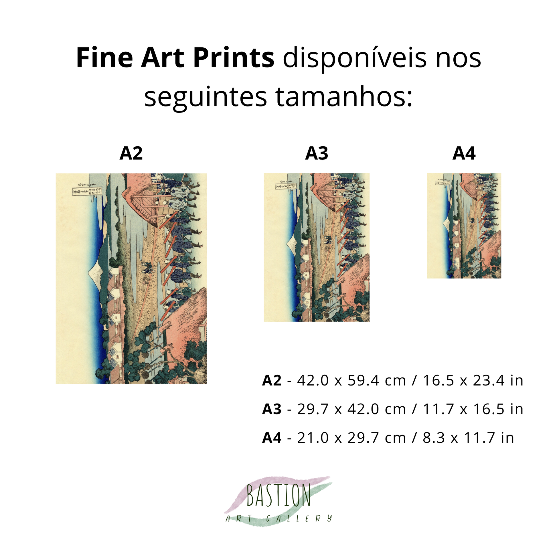 A obra, em impressão de madeira colorida, mede aproximadamente 25,4 x 37,5 cm (cerca de 10 x 14,8 polegadas) e está em coleções como a do Museu Nacional de Tóquio, exemplificando a habilidade de Hokusai em mesclar a efemeridade da vida urbana com a constância espiritual do Monte Fuji.